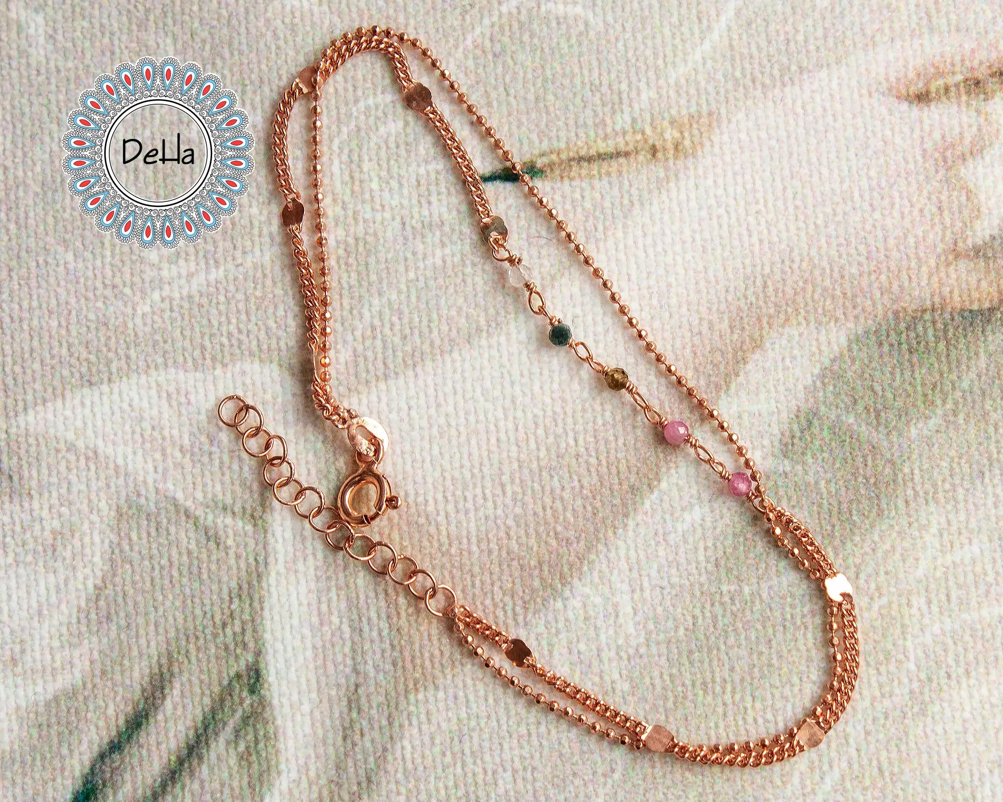Double Chain Multicolor Bracelet, Delicate Bracelet, Colorful Bracelet, Rose Gold Bracelet, Chain Bracelet, Rainbow Bracelet, Beach Bracelet