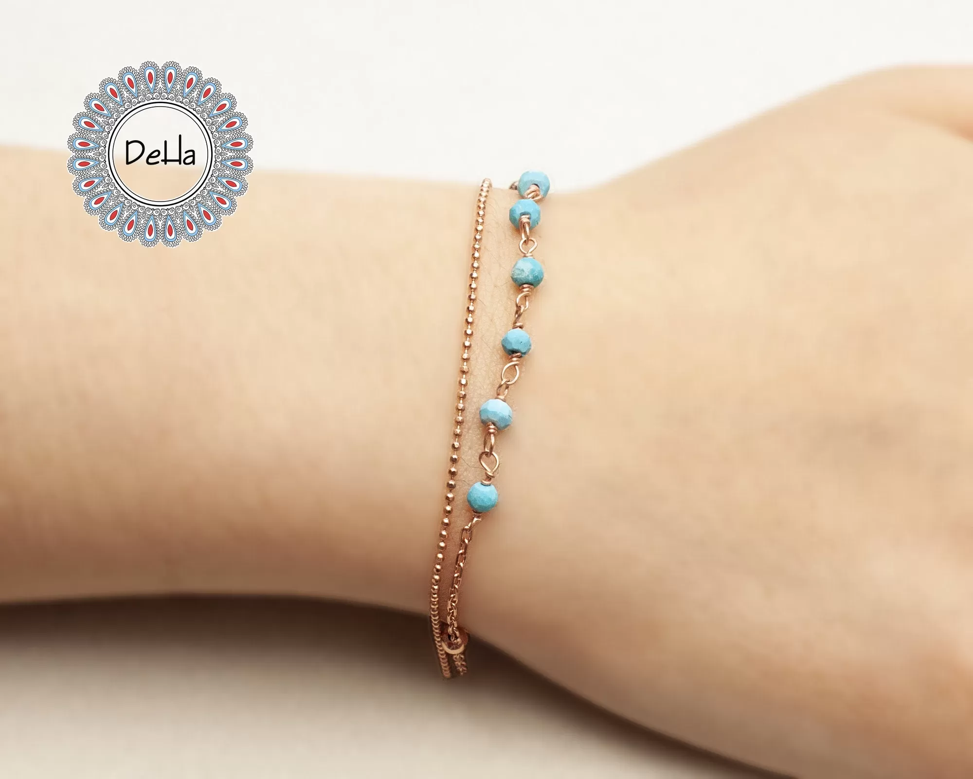 Double Chain Navajo Bracelet, Delicate Bracelet, Rose Gold Bracelet, Chain Bracelet, Turquoise Bracelet, Dainty Bracelet, Beach Bracelet