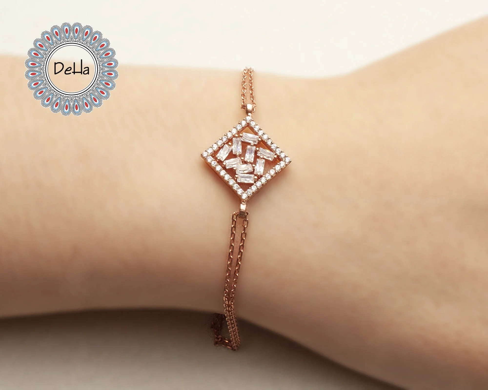 Rectangle Square Baguette Cut Bracelet, Baguette Jewelry, Art Deco Bracelet, Women Bracelet, Statement Bracelet, Rose Gold Bracelet, Dainty