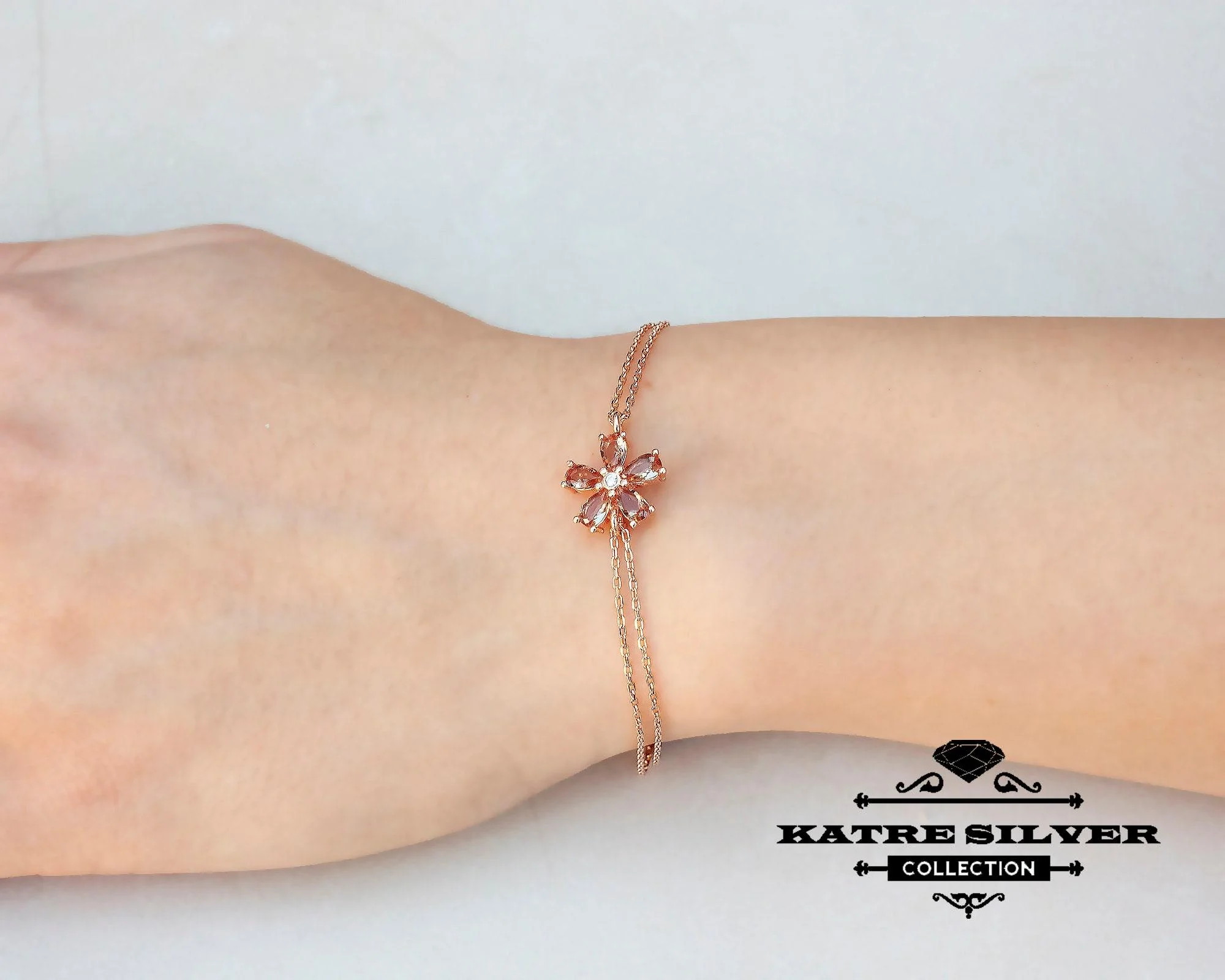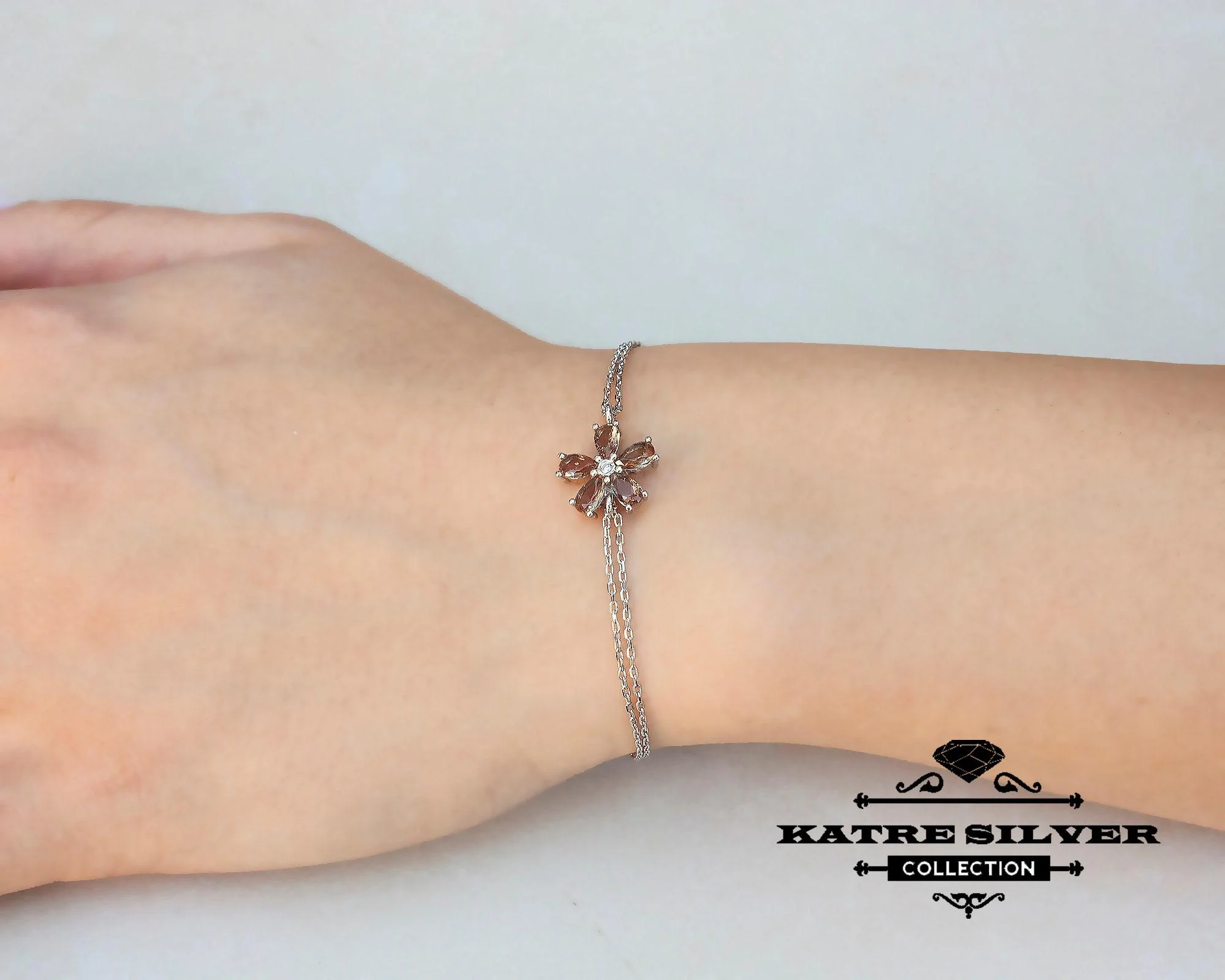 Rose Turkish Diaspore Flower Bracelet, Turkish Bracelet, Flower Bracelet, Flower Jewelry, Floral Bracelet, Silver Bracelet, Summer Bracelet