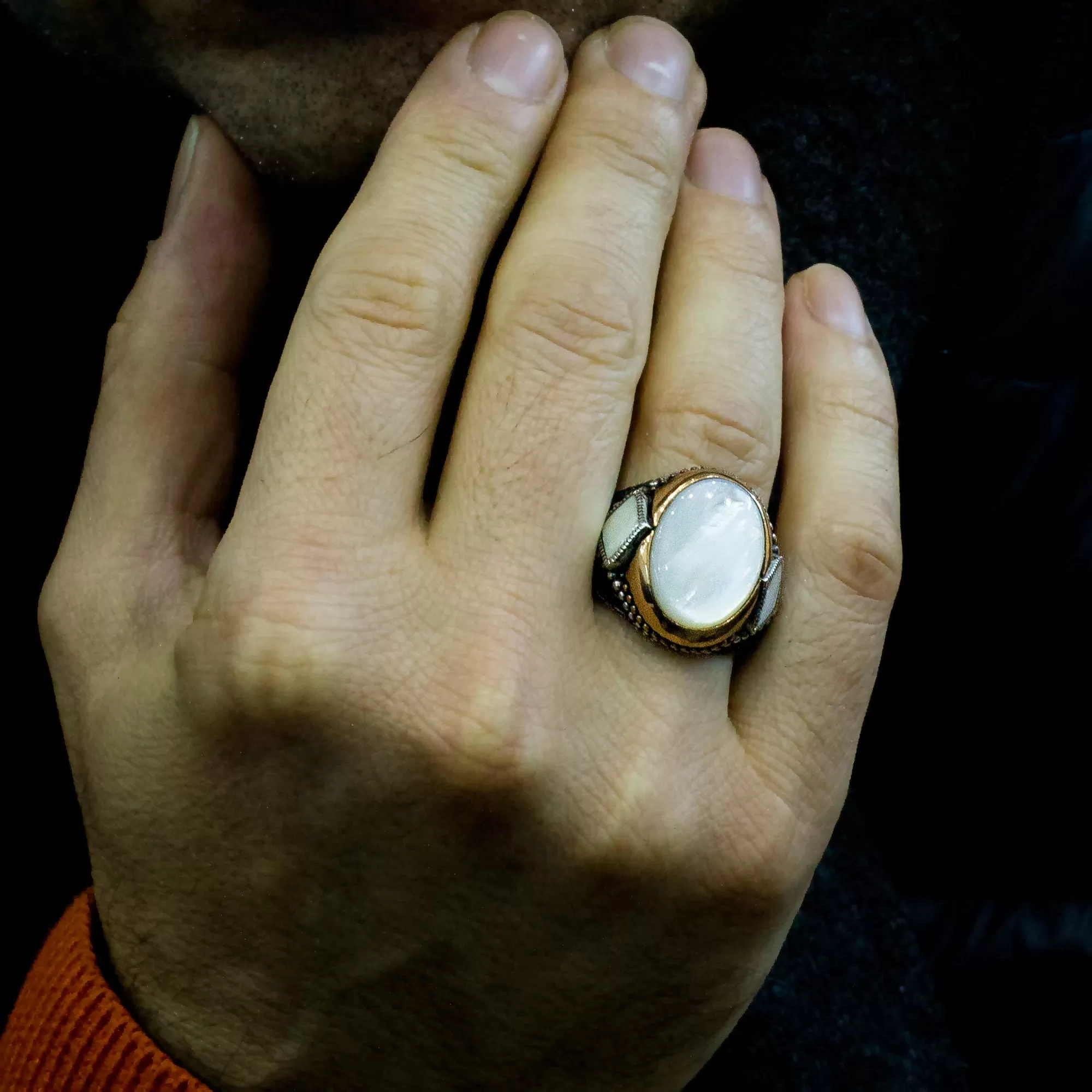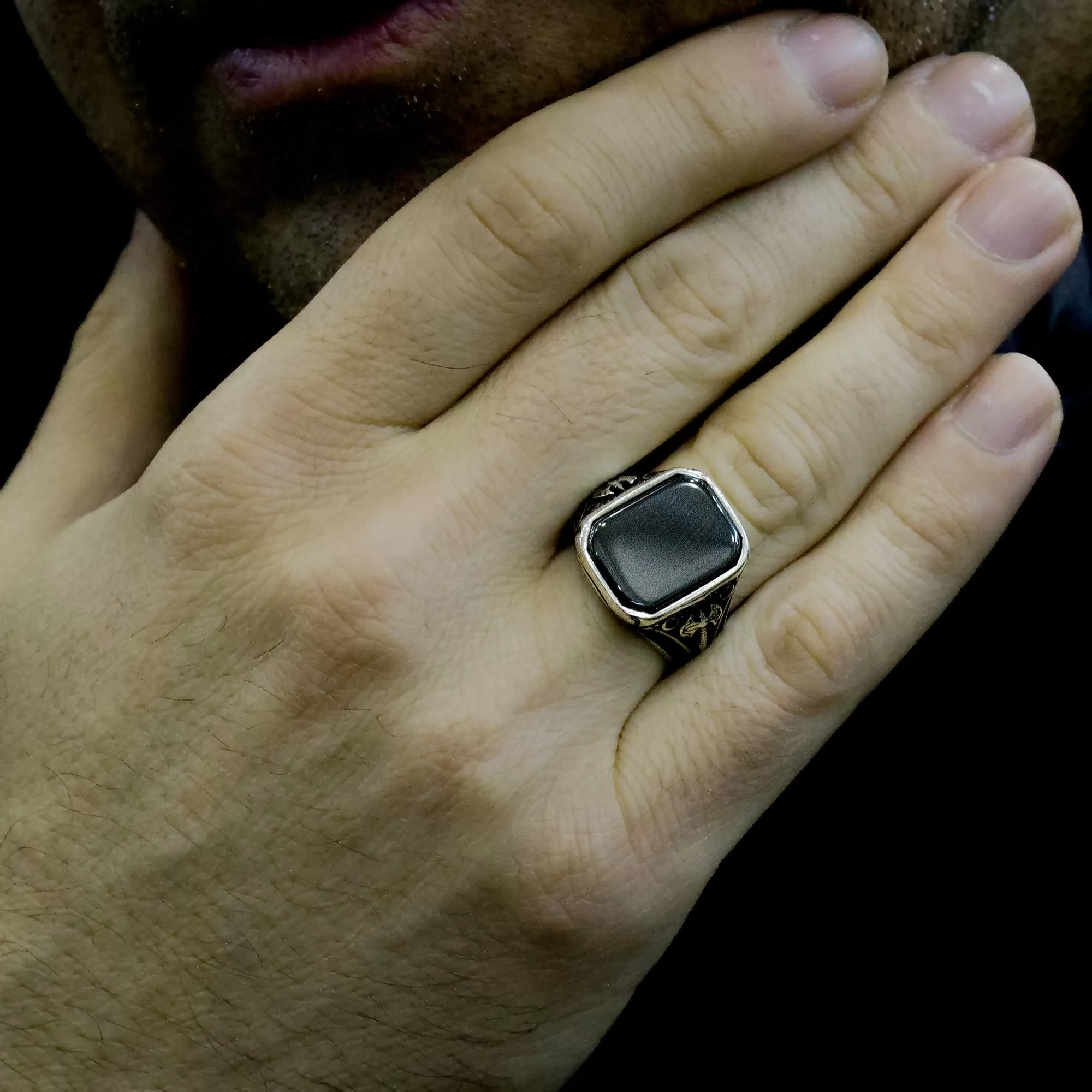 925 Sterling Silver Fleur de Lis Pattern Rings for Men, Antique Agate Ring, Unique Collection 925 Silver Ring, Vintage Jewelry, Gift for Him