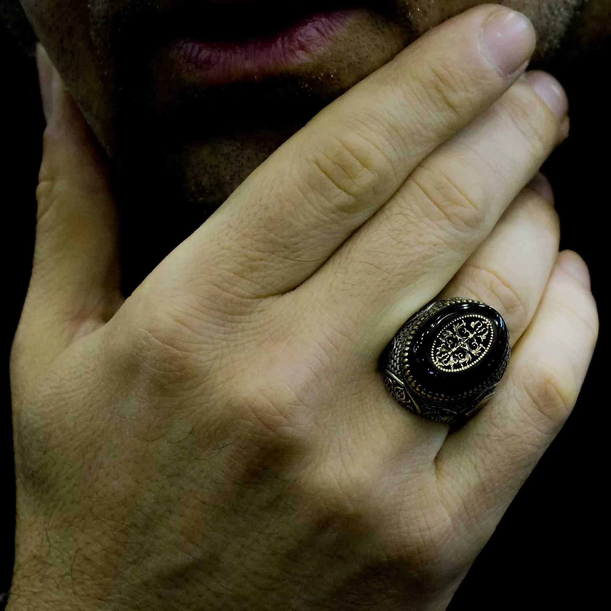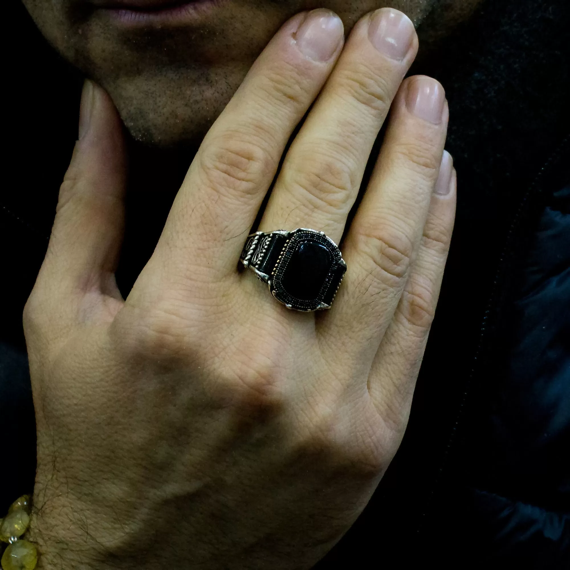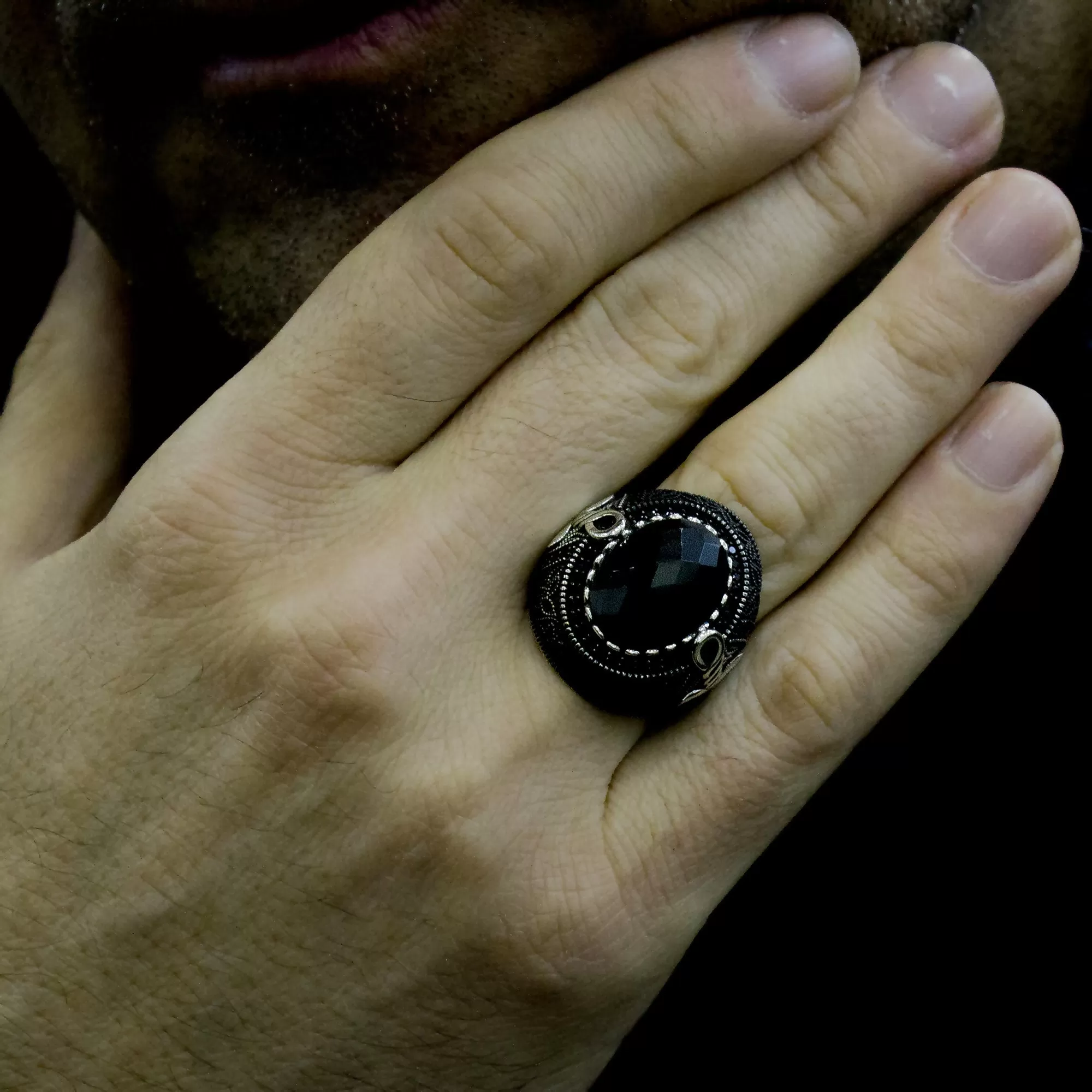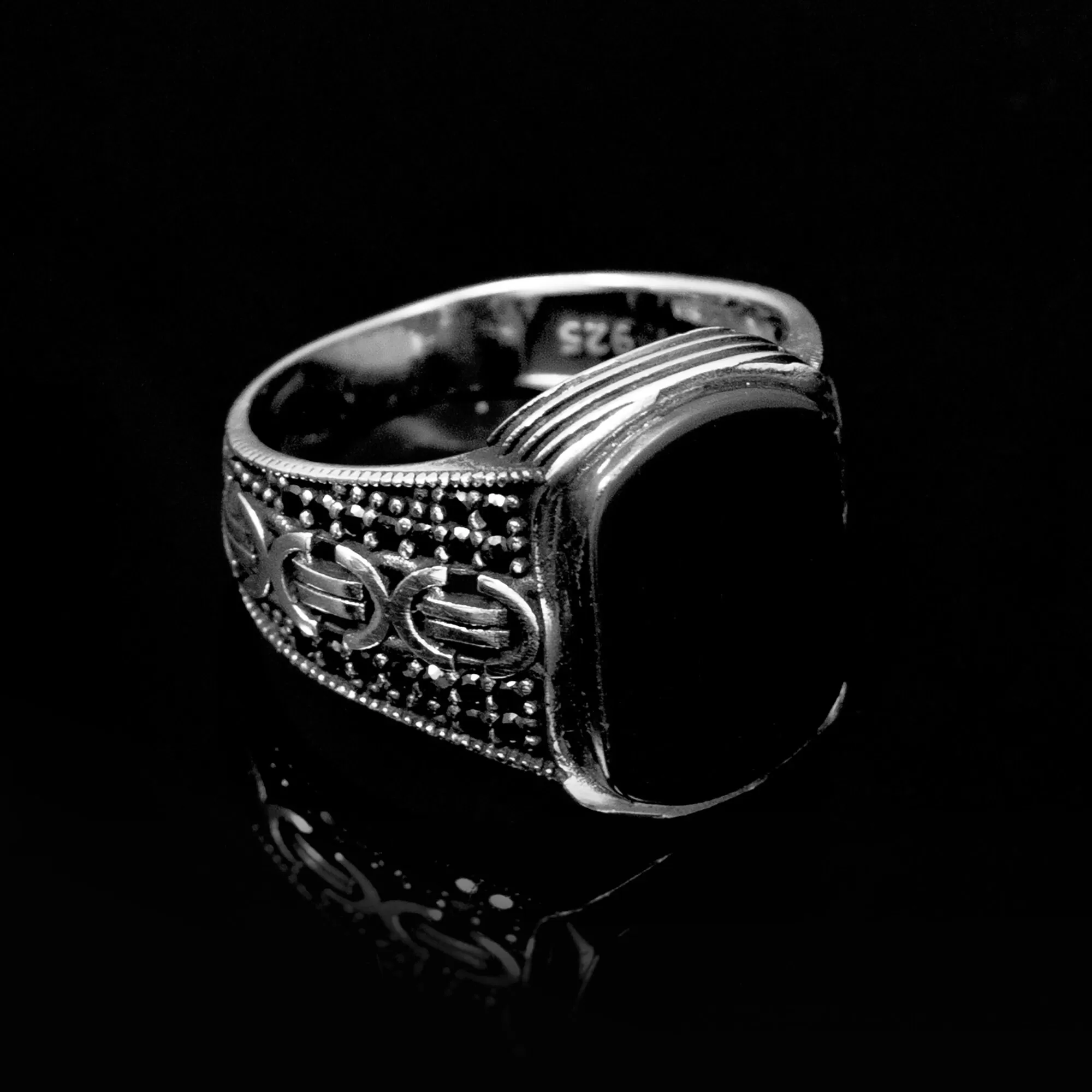 925 Sterling Silver Byzantine Chain Pattern Rings for Men, Chain Jewelry, Silver Onyx Ring, Vintage Jewelry, Man Gemstone Ring, Gift For Men