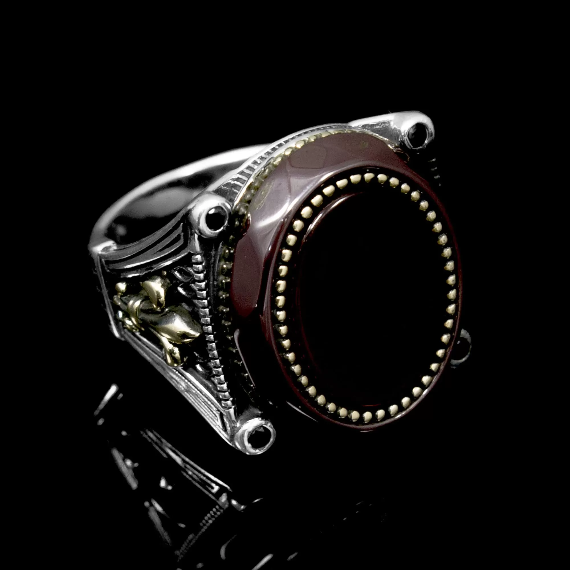 925 Sterling Silver Art Nouveau Pattern Rings for Men with Red Amber Stone, Red Stone Ring, Antique Style Ring, Ottoman Ring, Gift for Man