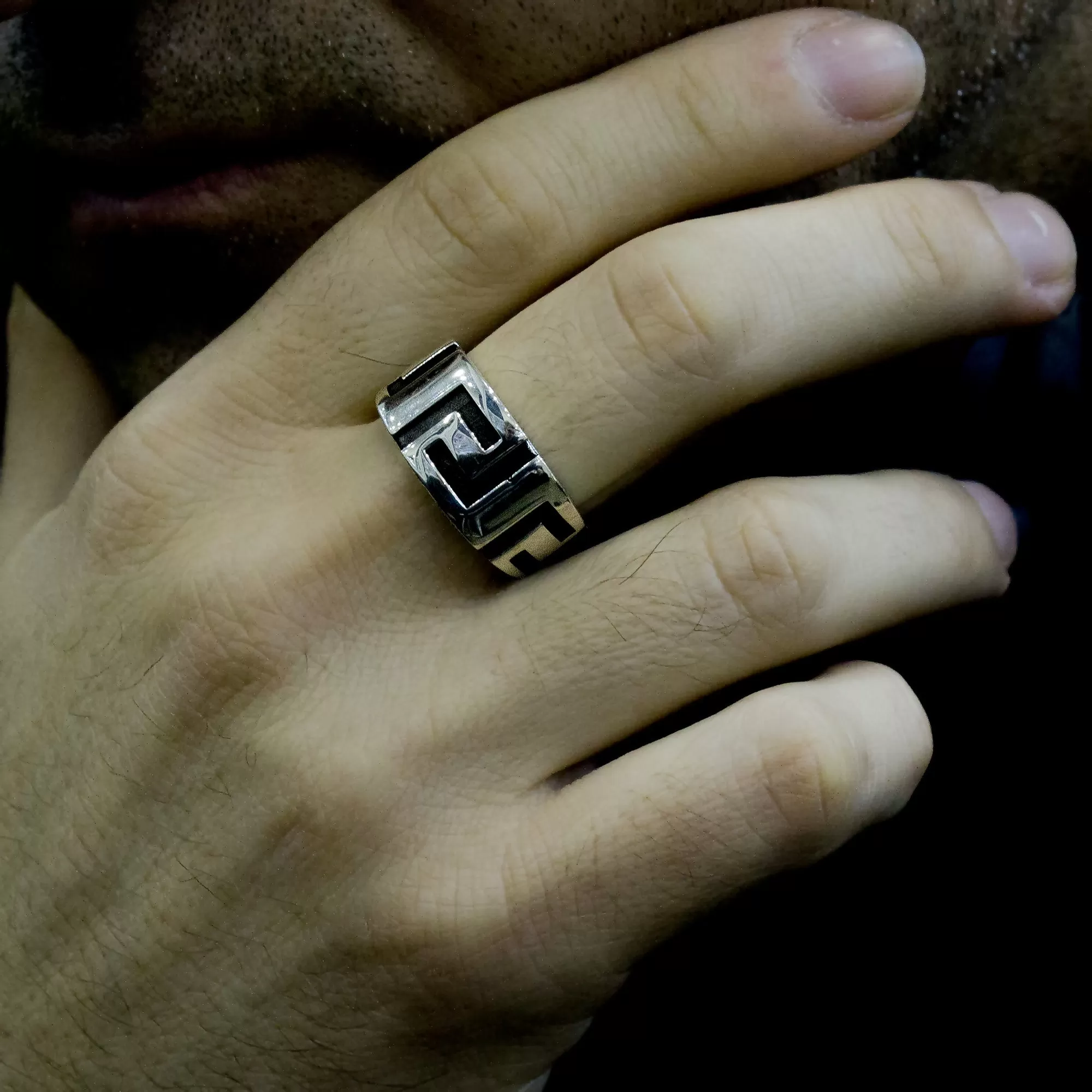 925 Sterling Silver Geometric Shape Rings for Men, Geometric Jewelry, Men’s Silver Design, Cool Ring, Vintage Jewelry, Gift for Him