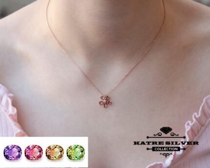 Sultanite Diaspore Flower Necklace 925 Sterling Silver Rose Gold Plated Color Change Sultanite Necklace Turkish Diaspore Flower Pendant