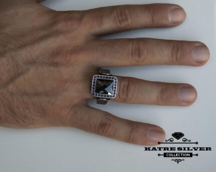 Men’s Onyx Ring, Sterling Silver Onyx Ring, Emerald Cut Black Onxy Ring,Turkish Hand Made Ring, Mens Black Onyx Ring, Gift for Husband