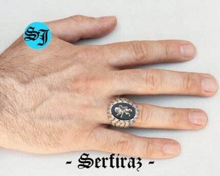 Lion Men Ring, Black Onyx Ring, Gothic Style Lion Ring, Wild Lion Mens Jewelry, Grandfather Gift, Engagement Men Ring, Husband Gift Ring