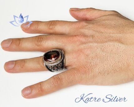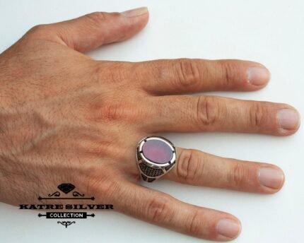 Mens Handmade Ring, Turkish Handmade Silver Men Ring, Ottoman Mens Ring, Red Stone Men Ring, Gift for Him, 925k Sterling Silver Ring