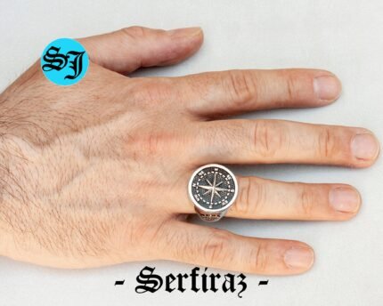 Compass Ring, Antique Silver, Mens Compass Ring, Ancient Silver Ring, Traveler’s Ring, Graduation Ring, Ship Rudder Ring, Handmade Jewelry