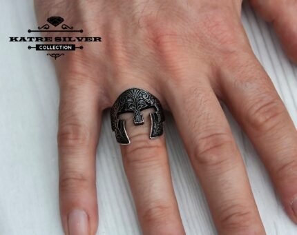 Mens Handmade Ring, Turkish Handmade Silver Men Ring, Ottoman Mens, Spartan Helmet Ring, Knight Ring, Gift for Him, 925k Sterling Silver