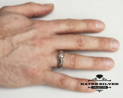 Amber Ring, Vintage Silver Ring, Naturel Baltic Amber Ring, Mens Ring with Gemstone, Handmade Men Jewelry, Rings for Men, Mens Accessory