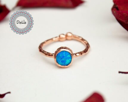 Rose Gold Blue Opal Ring, Unique Opal Ring, Opal Stacking Ring, Blue Opal Ring, Gold Opal Ring, Natural Opal Ring, Dainty Opal Ring