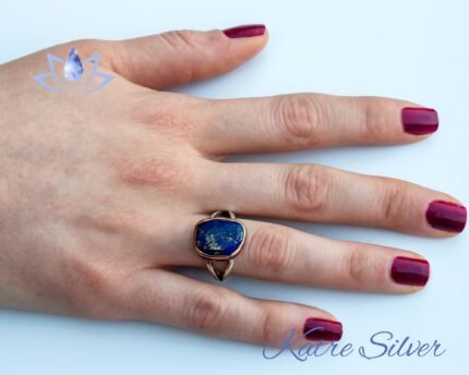 Gorgeous Gold and Blue Lapis Lazuli Ring, Handmade 925 Sterling Silver Women Ring, Rose Gold Chunky Ring, Gemstone Jewelry, Birthstone Gift