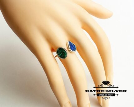 Mosaic Ring, Lapis Ring, Malachite Ring, Mosaic Stone, Lapis Lazuli Ring, Open Ring, Adjustable Ring, Mosaic Jewelry, Geometric Ring, Vintage