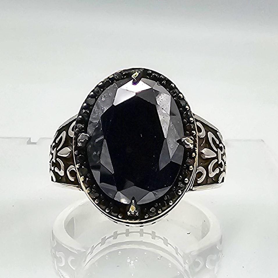 Elevate your style with this 925 Sterling Silver Round Black Onyx Ring. Order now to experience the charm of traditional Turkish jewelry in a modern statement ring for men.