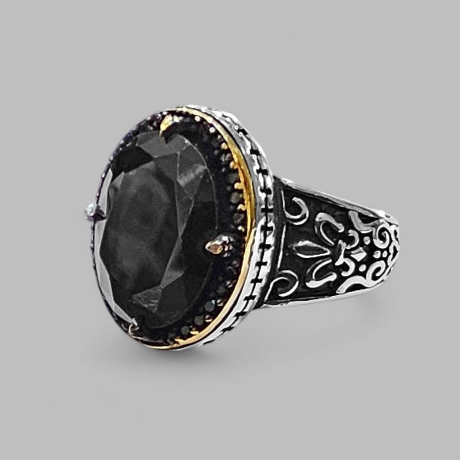925 Sterling Silver Oval Black Onyx Ring – Ottoman Style Turkish Jewelry – Bold Statement Ring
