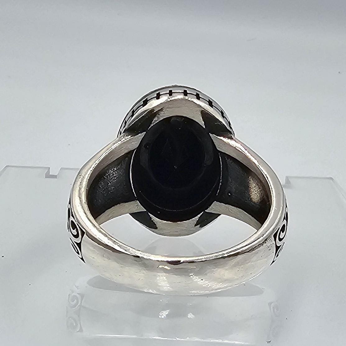 This ring is crafted with attention to detail, offering both quality and cultural richness. Ideal as a statement jewelry piece or a unique gift for him, this round black onyx ring is a standout addition to any jewelry collection.