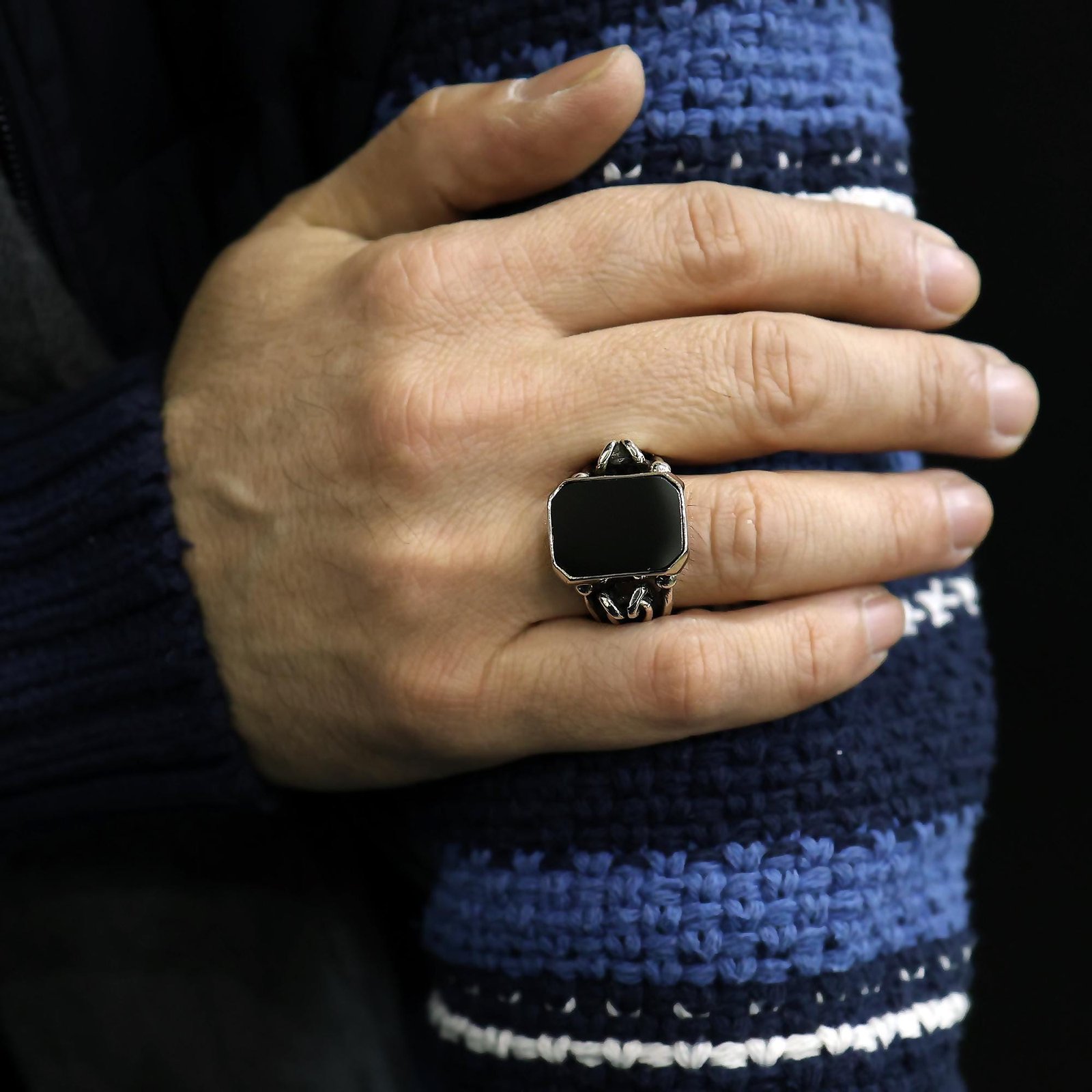 Handmade 925K Sterling Silver, Black Gemstone Men Ring, Black Onyx Men’s Ring, Mens Jewelry, Gift for Him