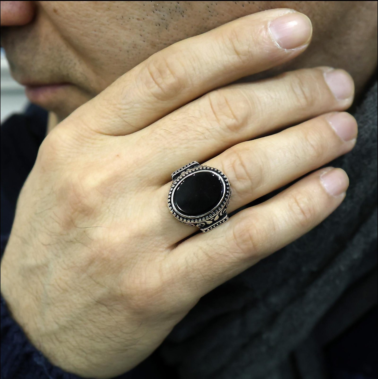 Handmade Sterling Silver Black Onyx Ring – Turkish Design