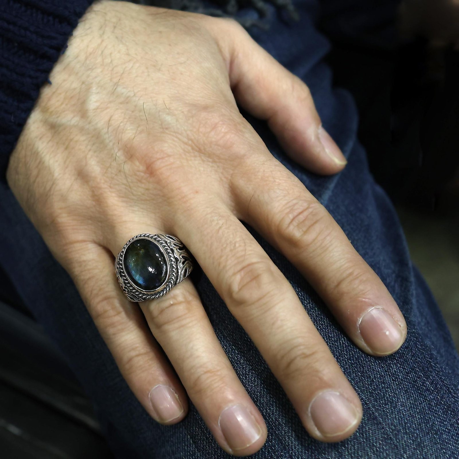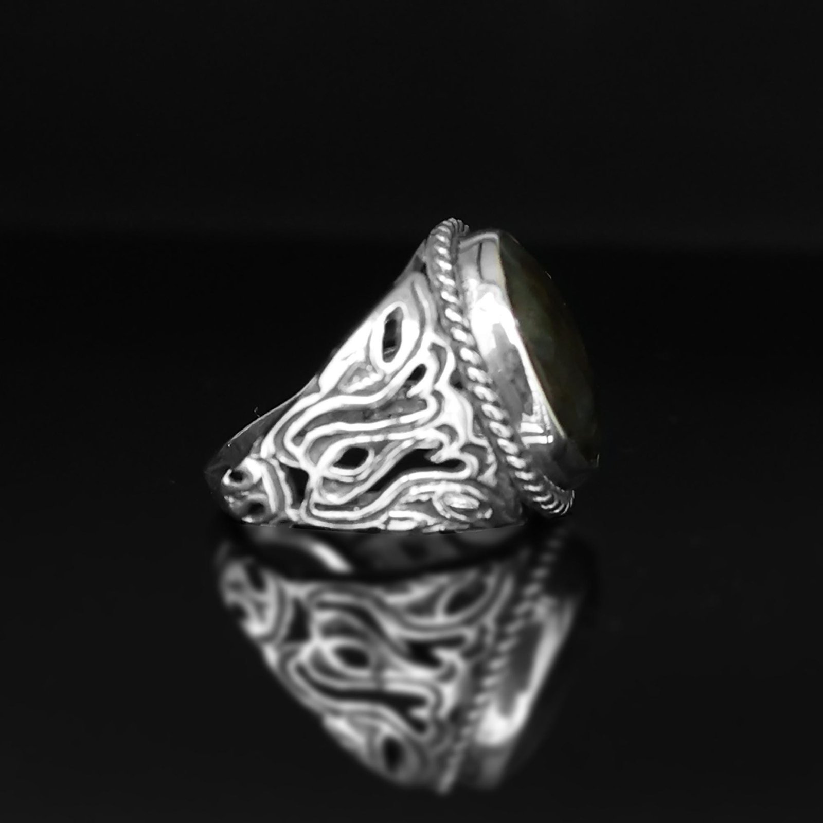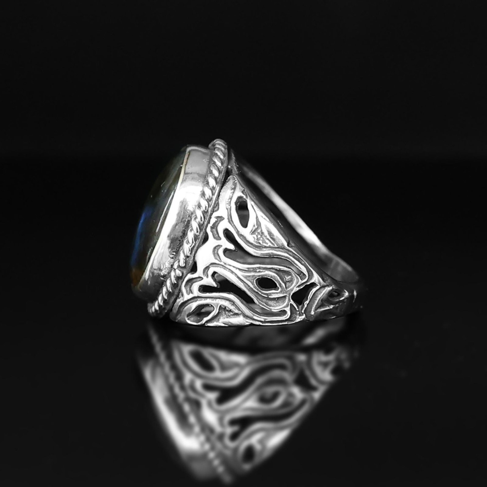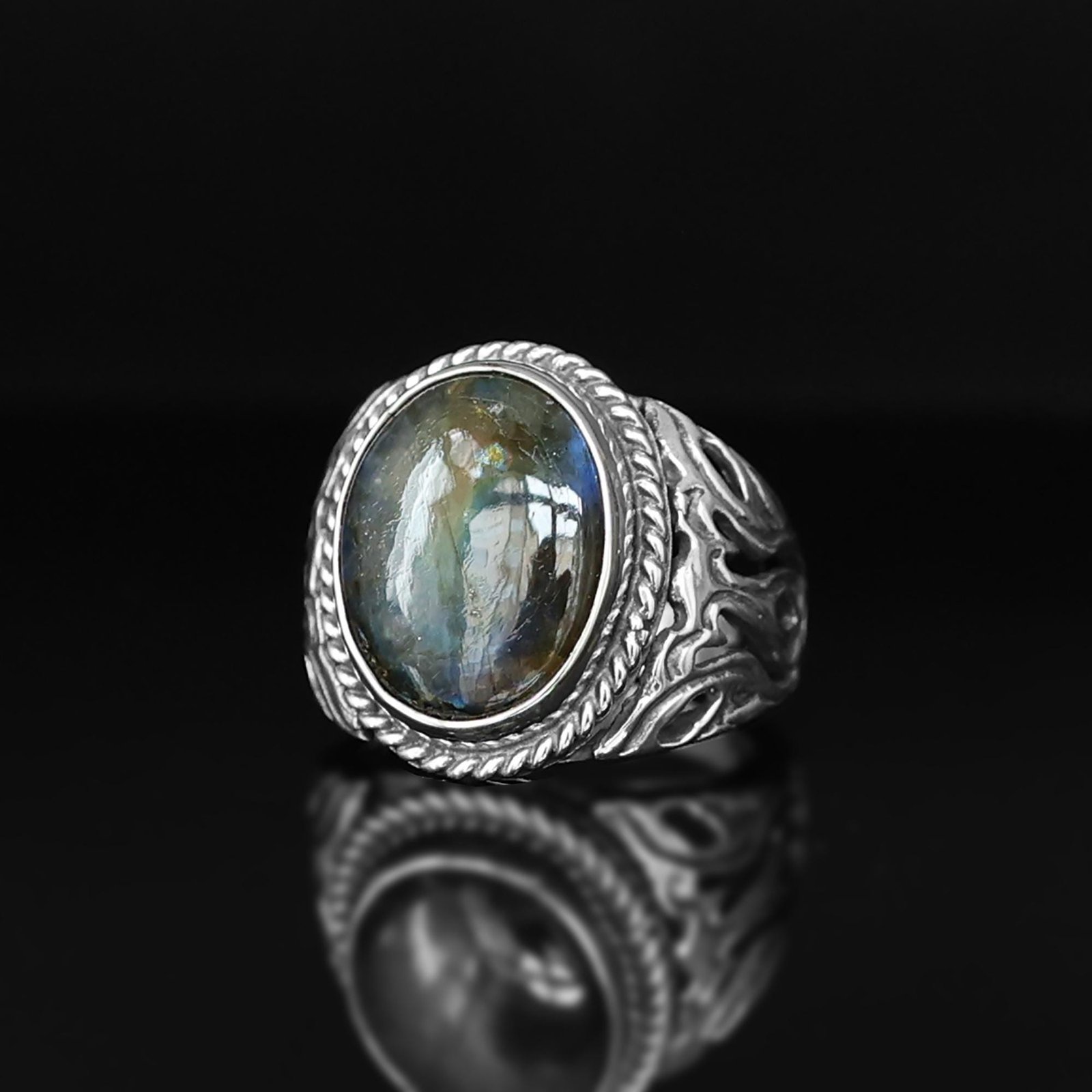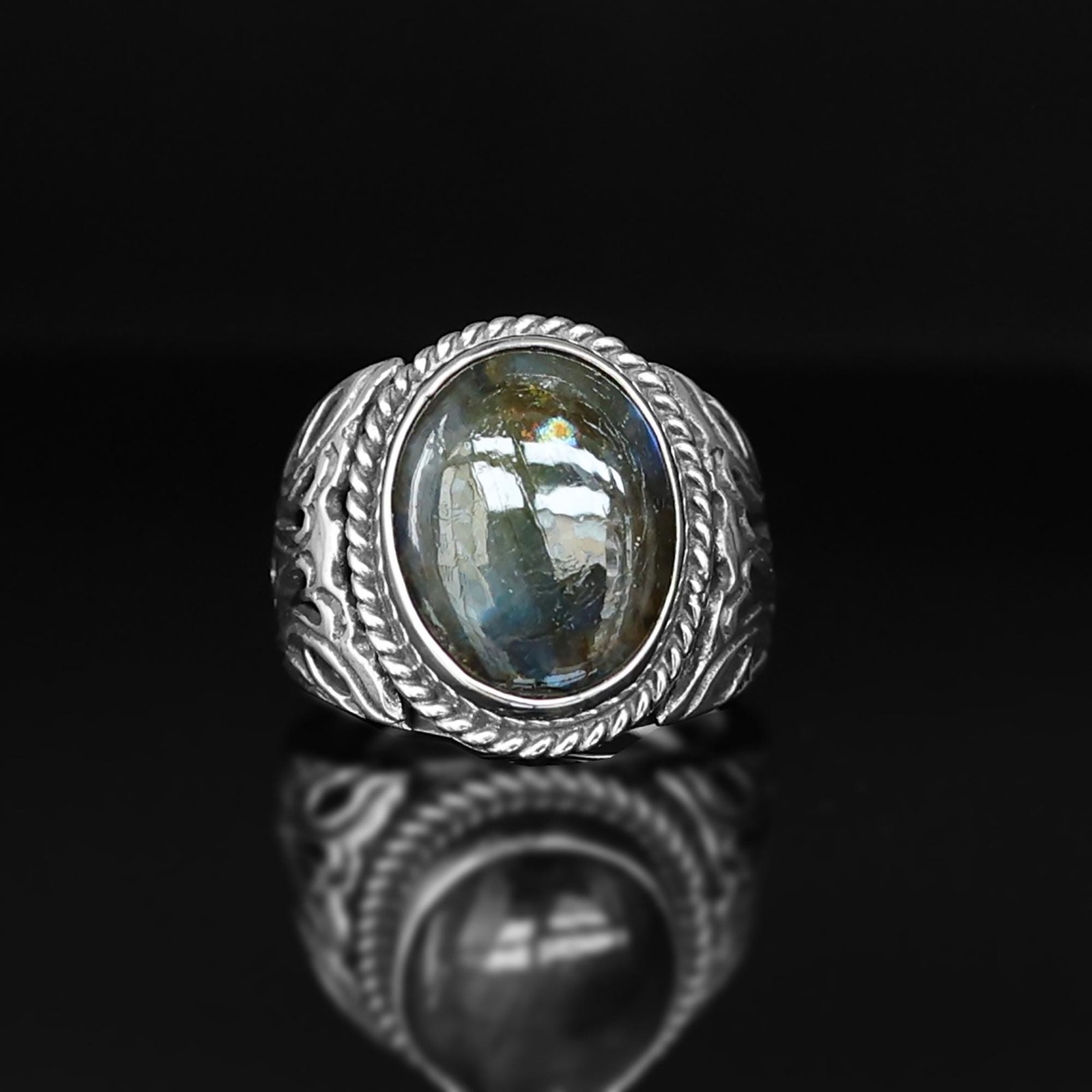 This stunning men’s ring features a mesmerizing oval-shaped labradorite gemstone, known for its unique iridescent glow. Set in solid 925 sterling silver, this handcrafted piece blends elegance and strength, making it the perfect statement ring or thoughtful gift.