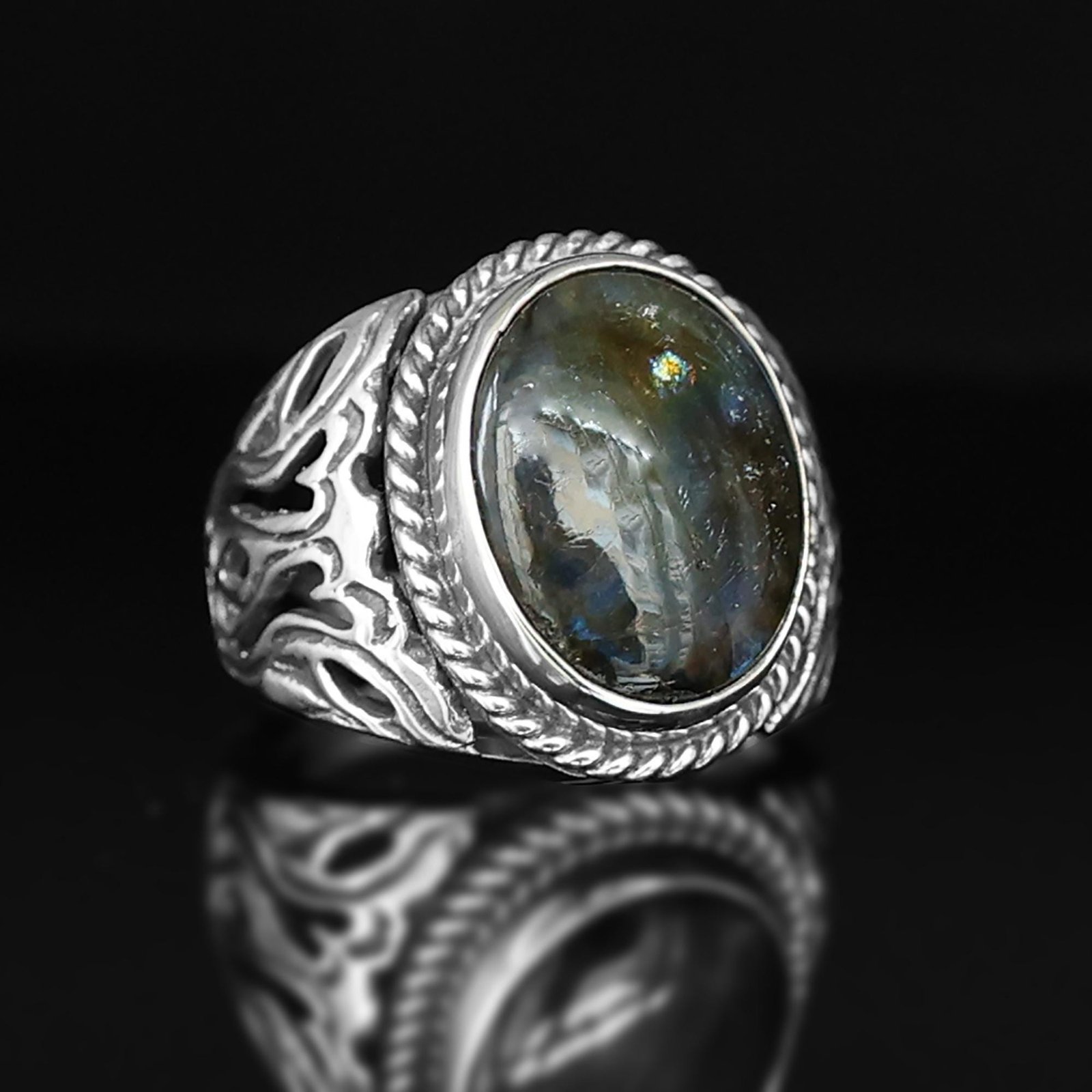 Silver Men’s Ring Labradorite Gemstone, 925 Sterling Silver, Oval Shape Gemstone, Handmade Jewelry, Gift for Him, New Year Gift