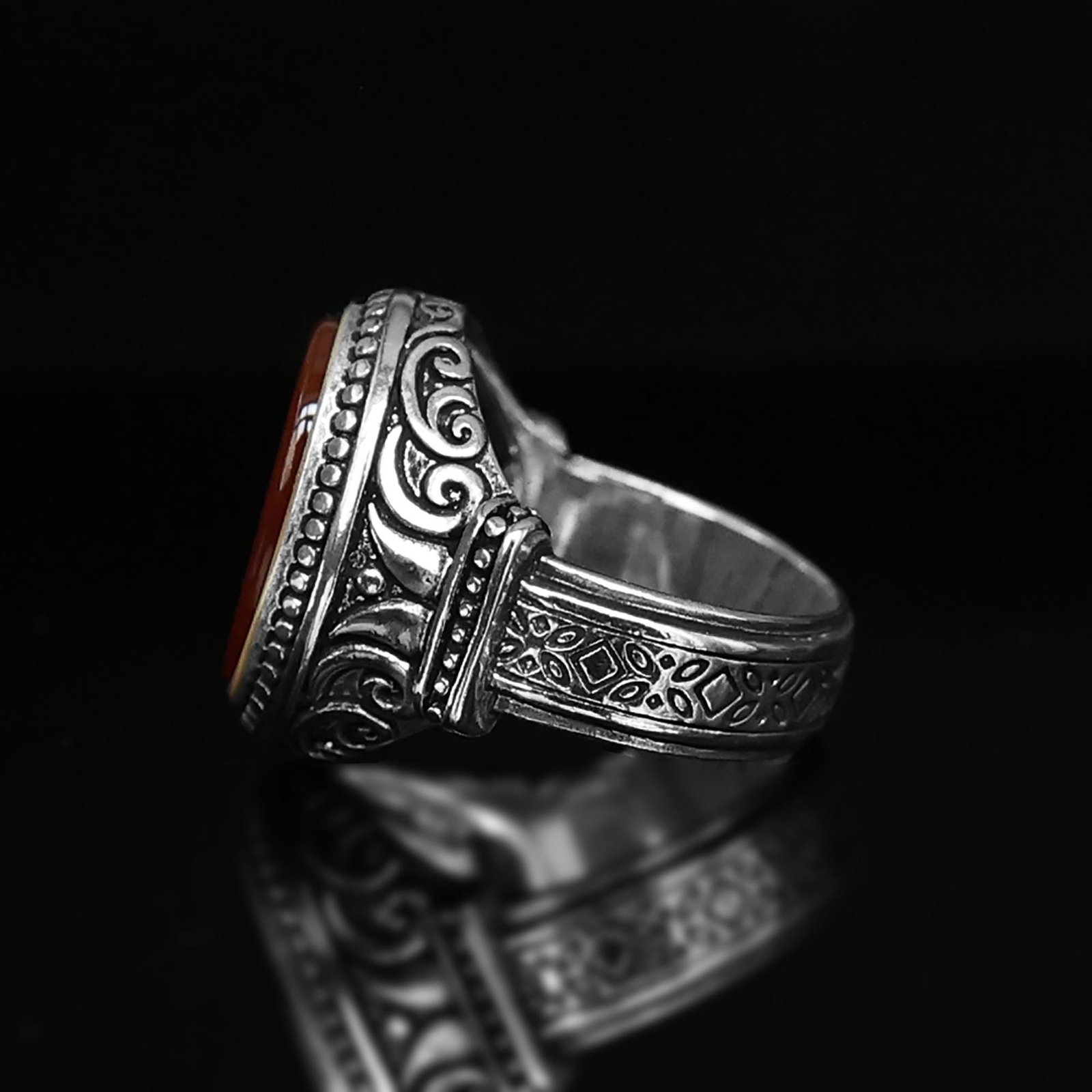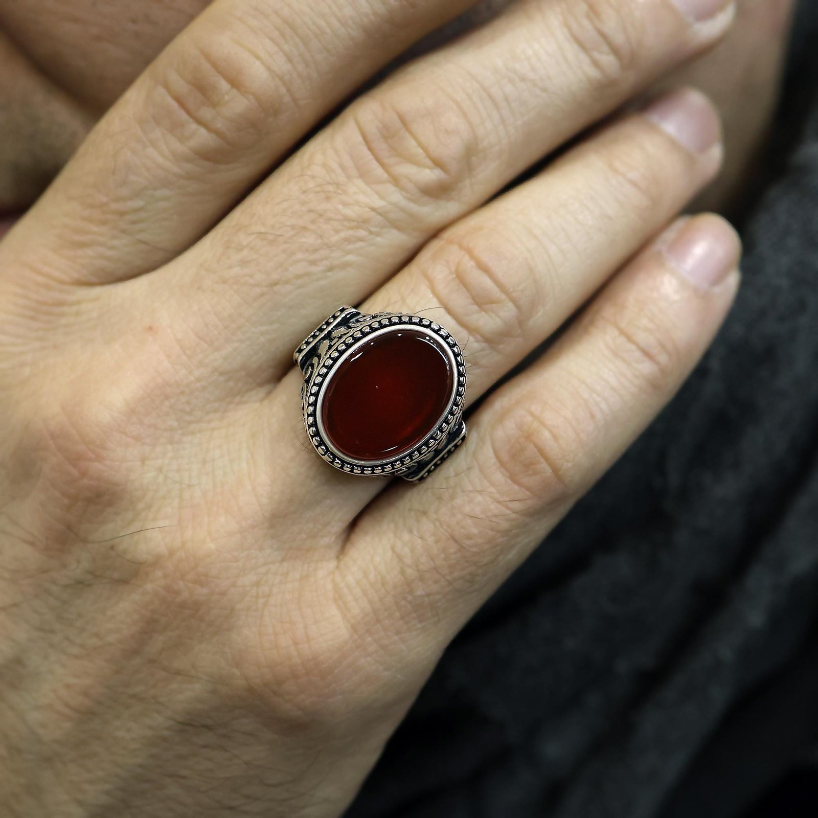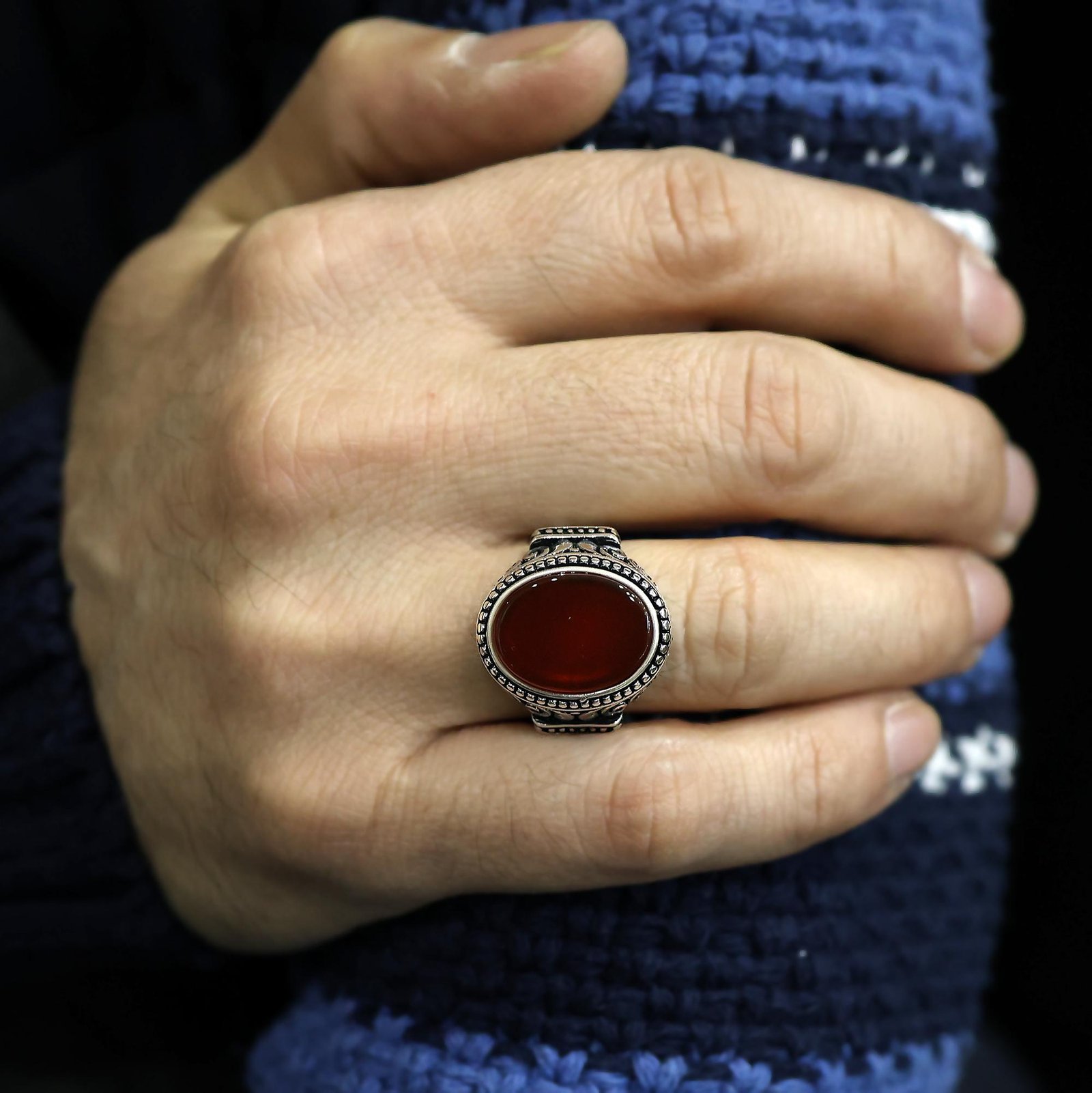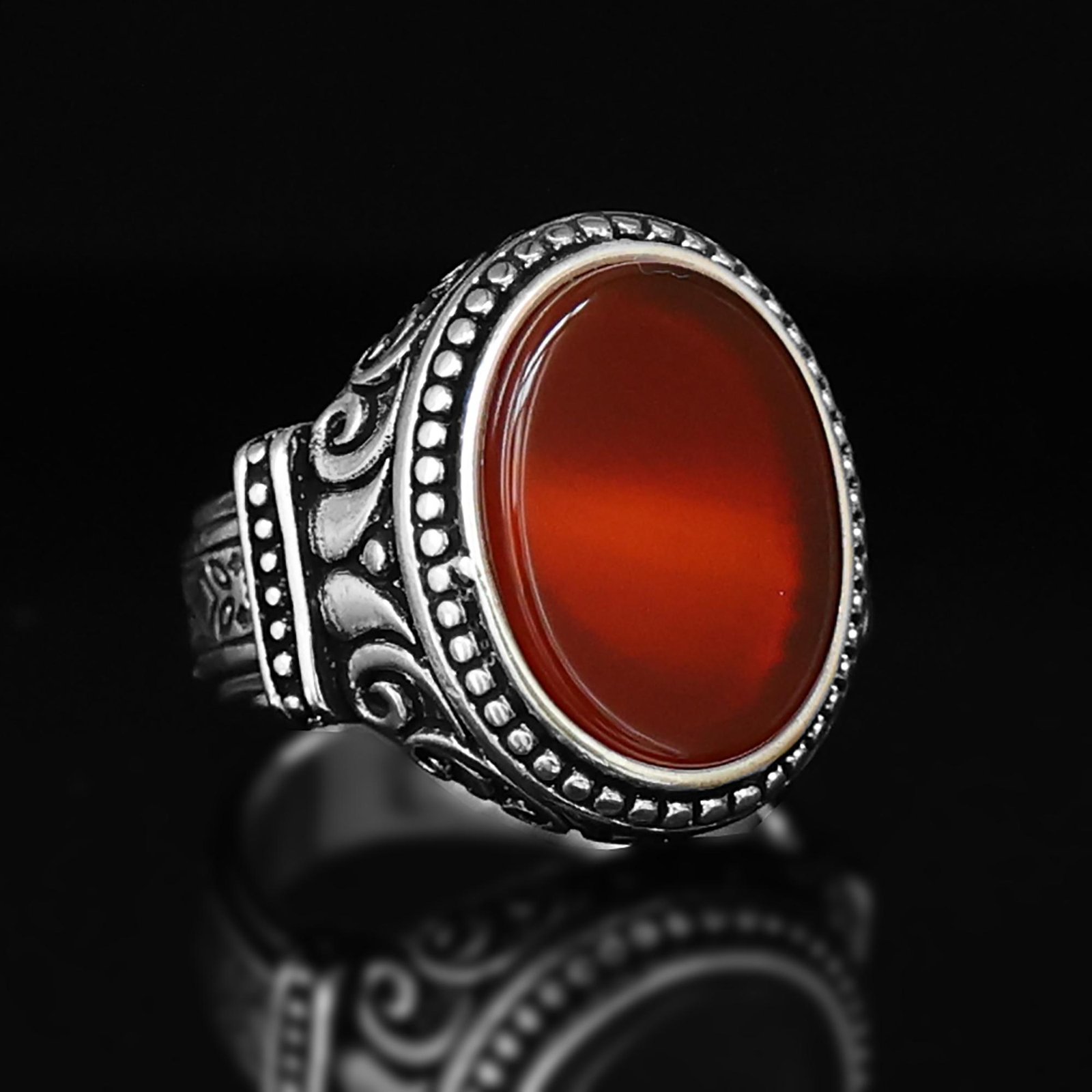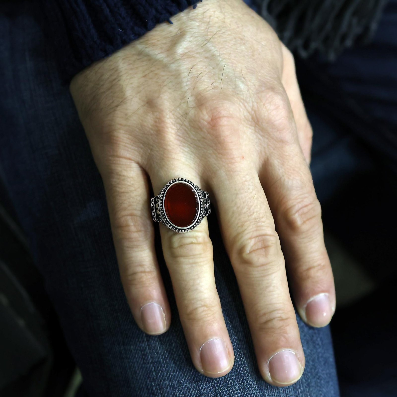 Carnelian Ring, Red Oval Agate Ring, Gemstone Ring, Art Deco Rings, Sterling Silver, Gift For Jewelry Him