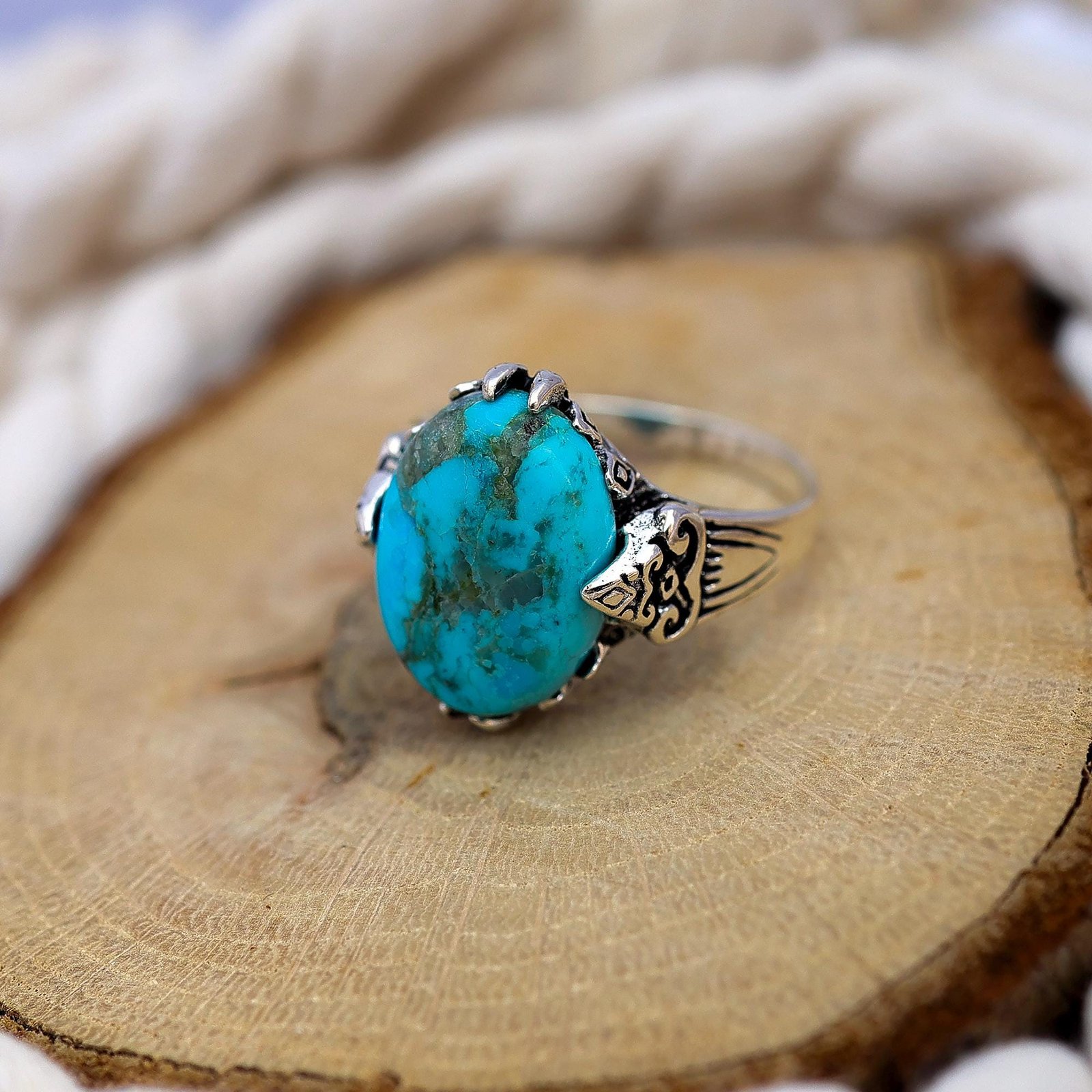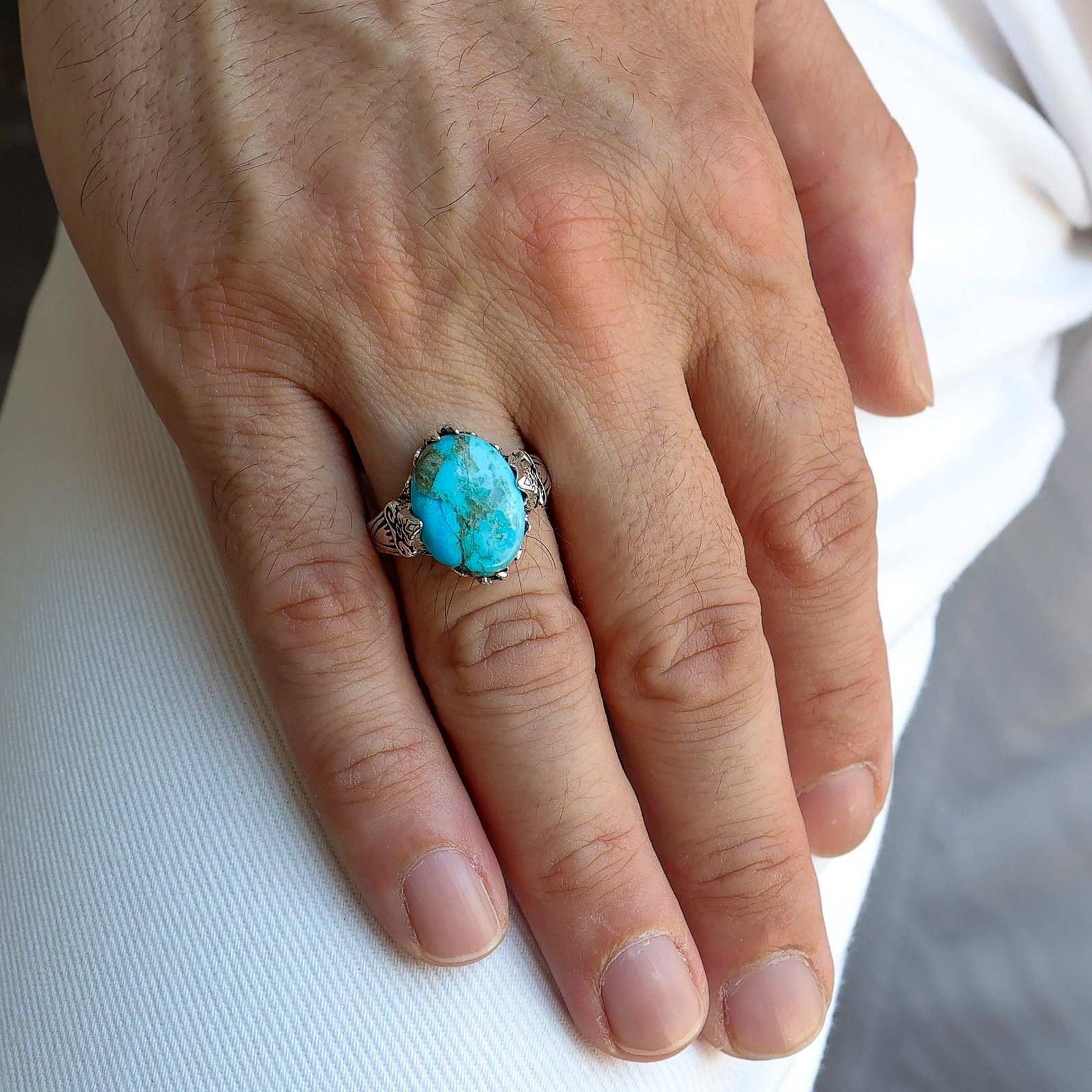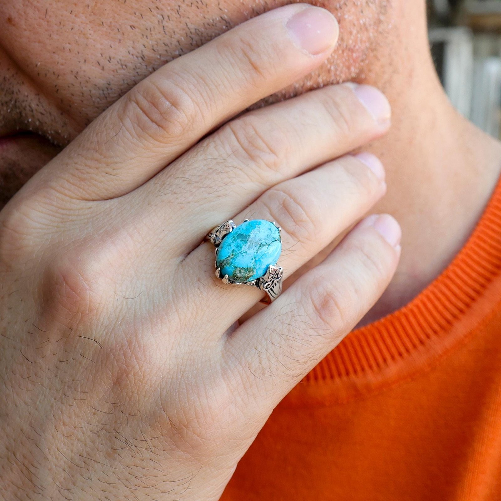 Handmade Turquoise Ring for Men: Rustic Sterling Silver, Vintage Style