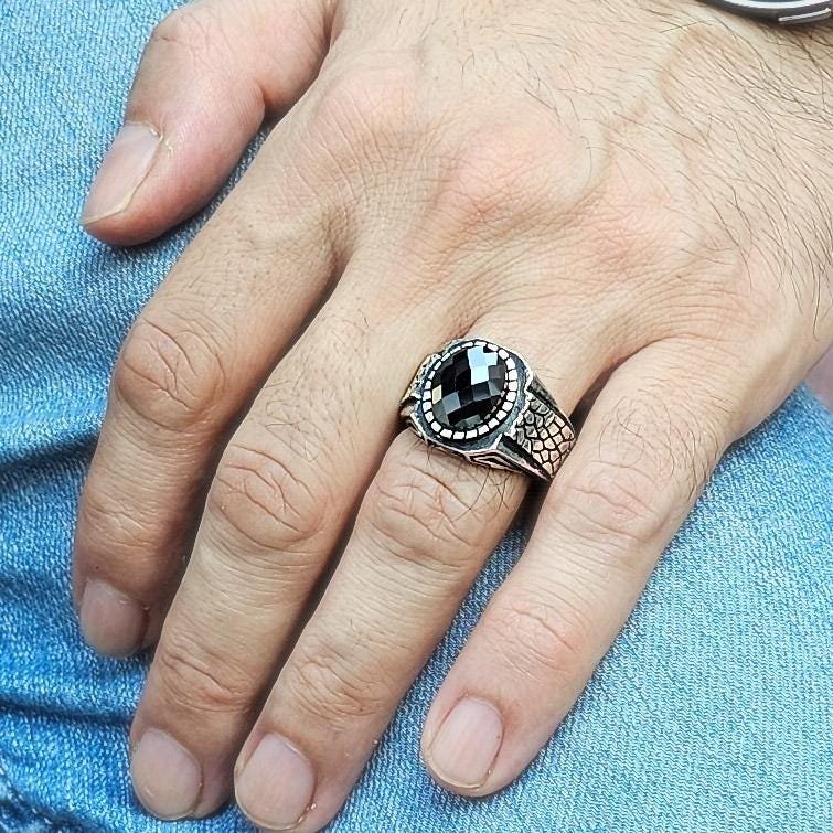 Mens Handmade Ring, Black Onyx Men Silver Ring, Oval Gemstone Ring, 925 Sterling Silver Men Ring, Anniversary Gifts