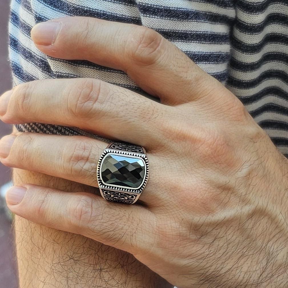 Mens Handmade Ring, Radiant Gemstone Ring, Black Onyx Men Silver Ring, 925 Sterling Silver Men Ring, Anniversary Gifts