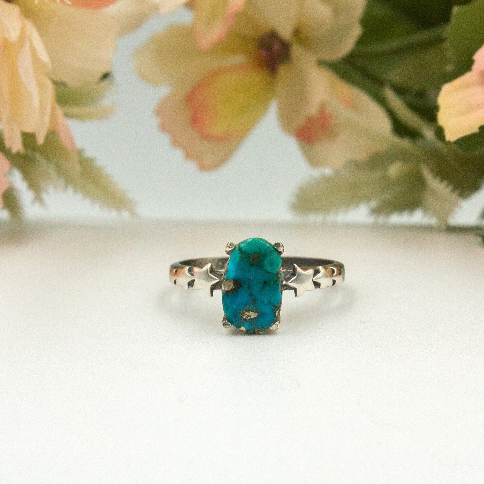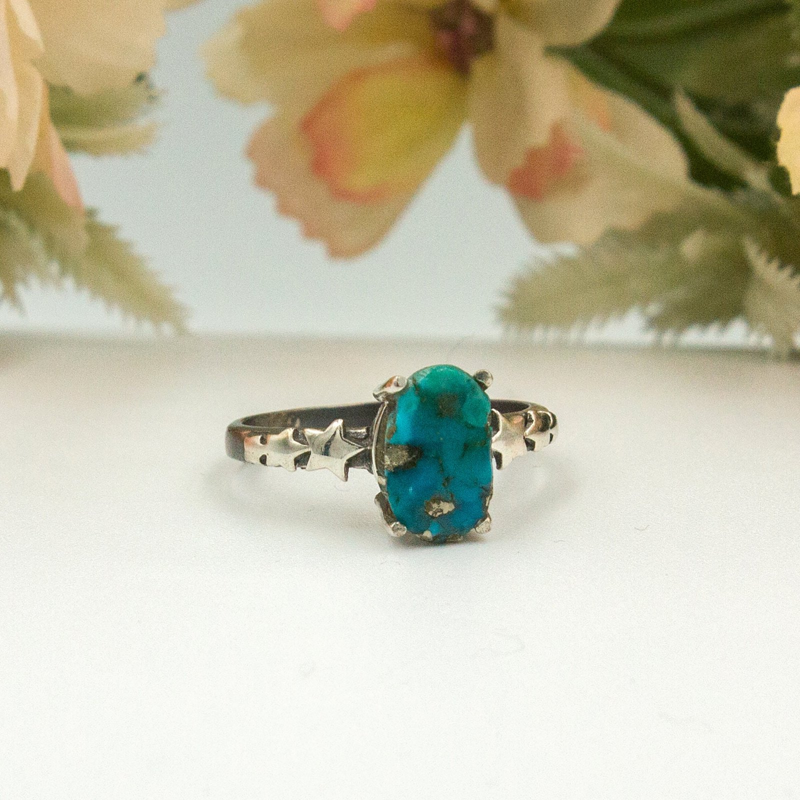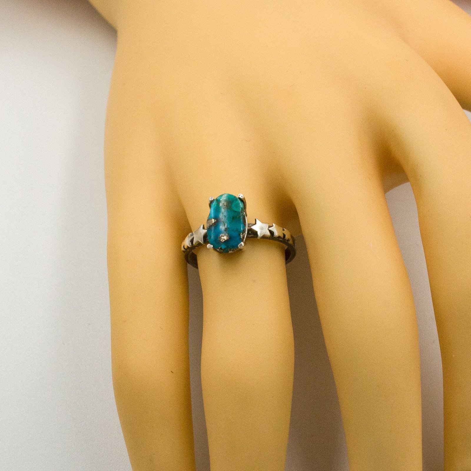 Natural Turquoise Star Pattern Solid Sterling Silver Ring 925