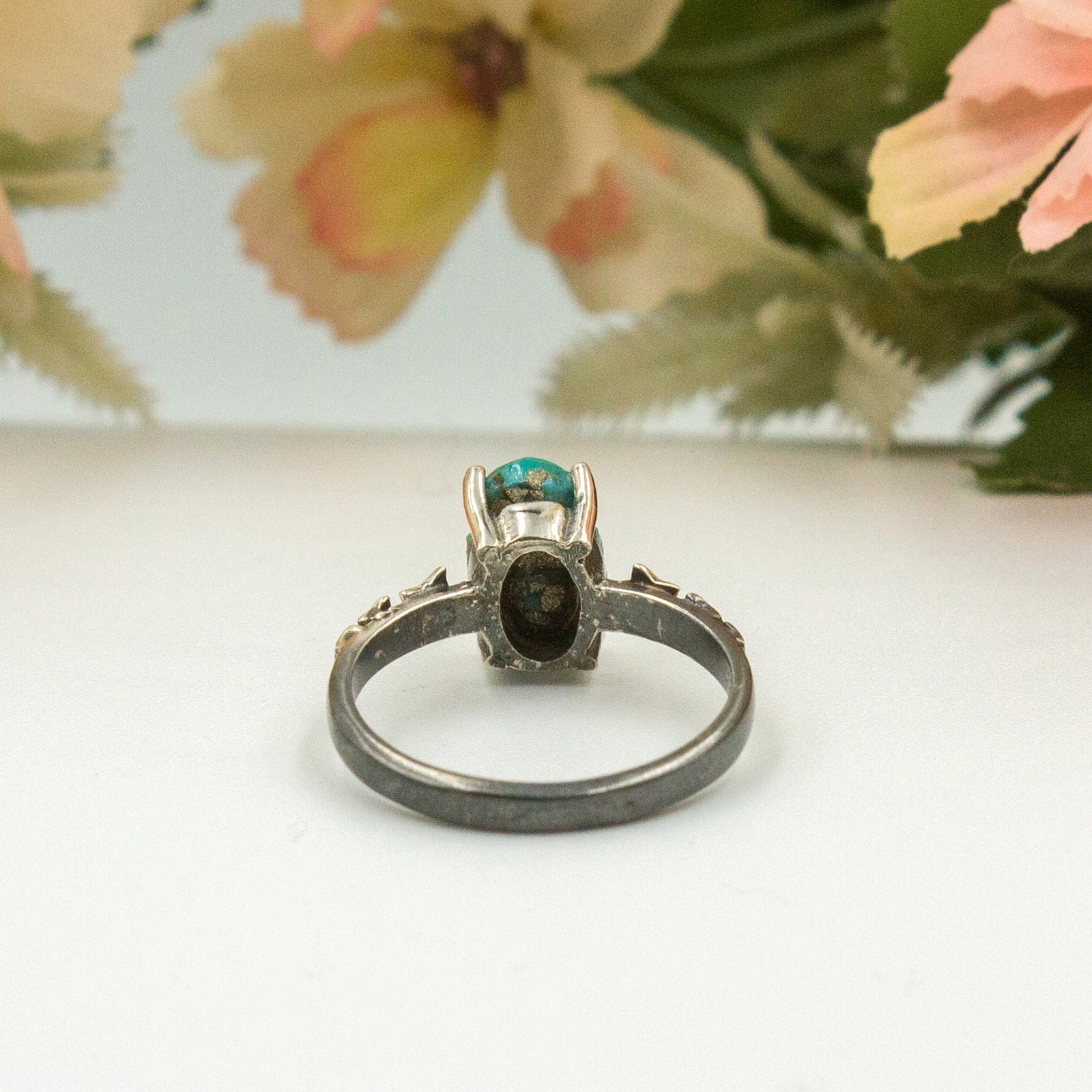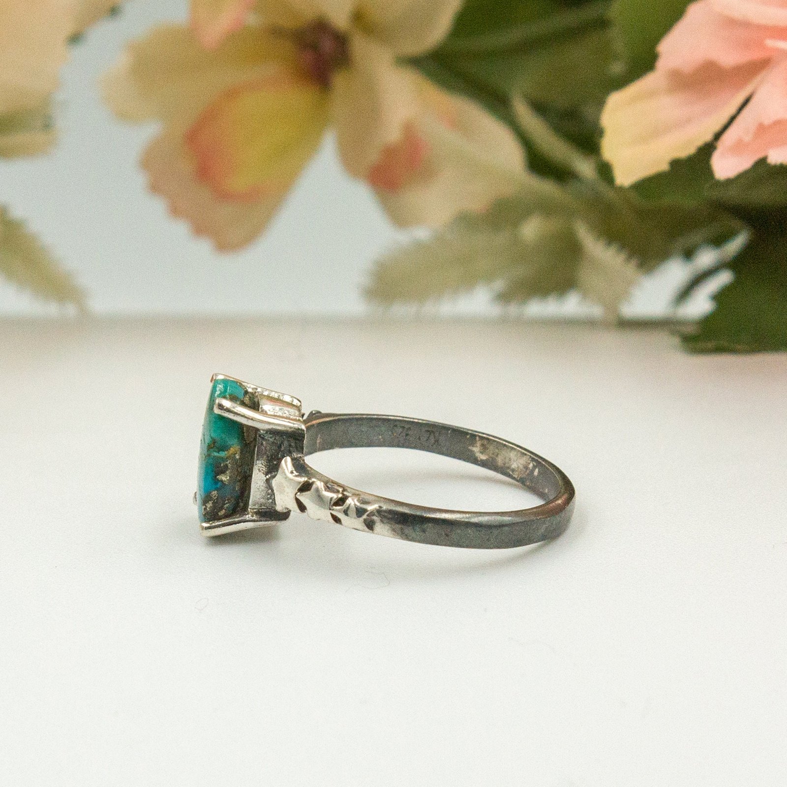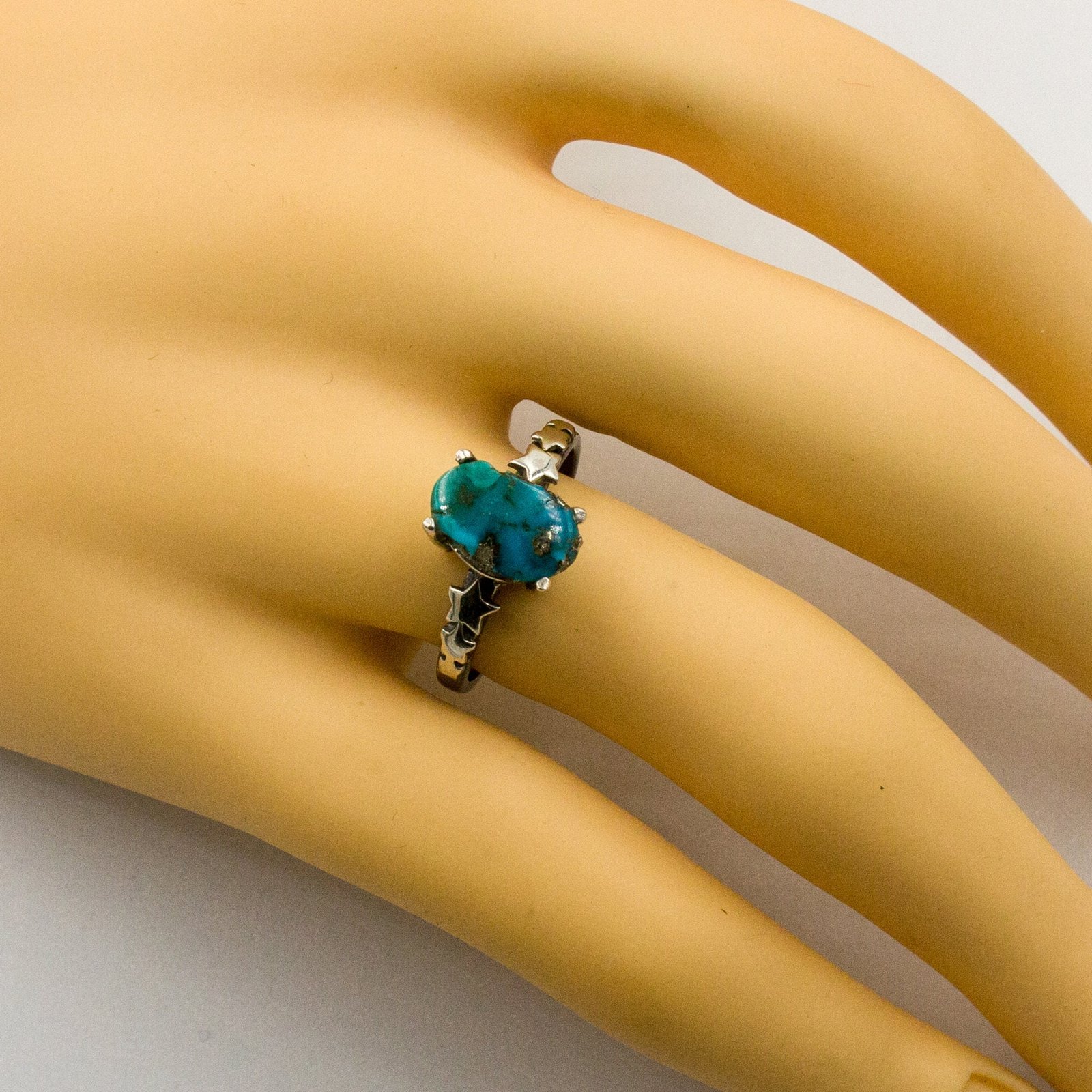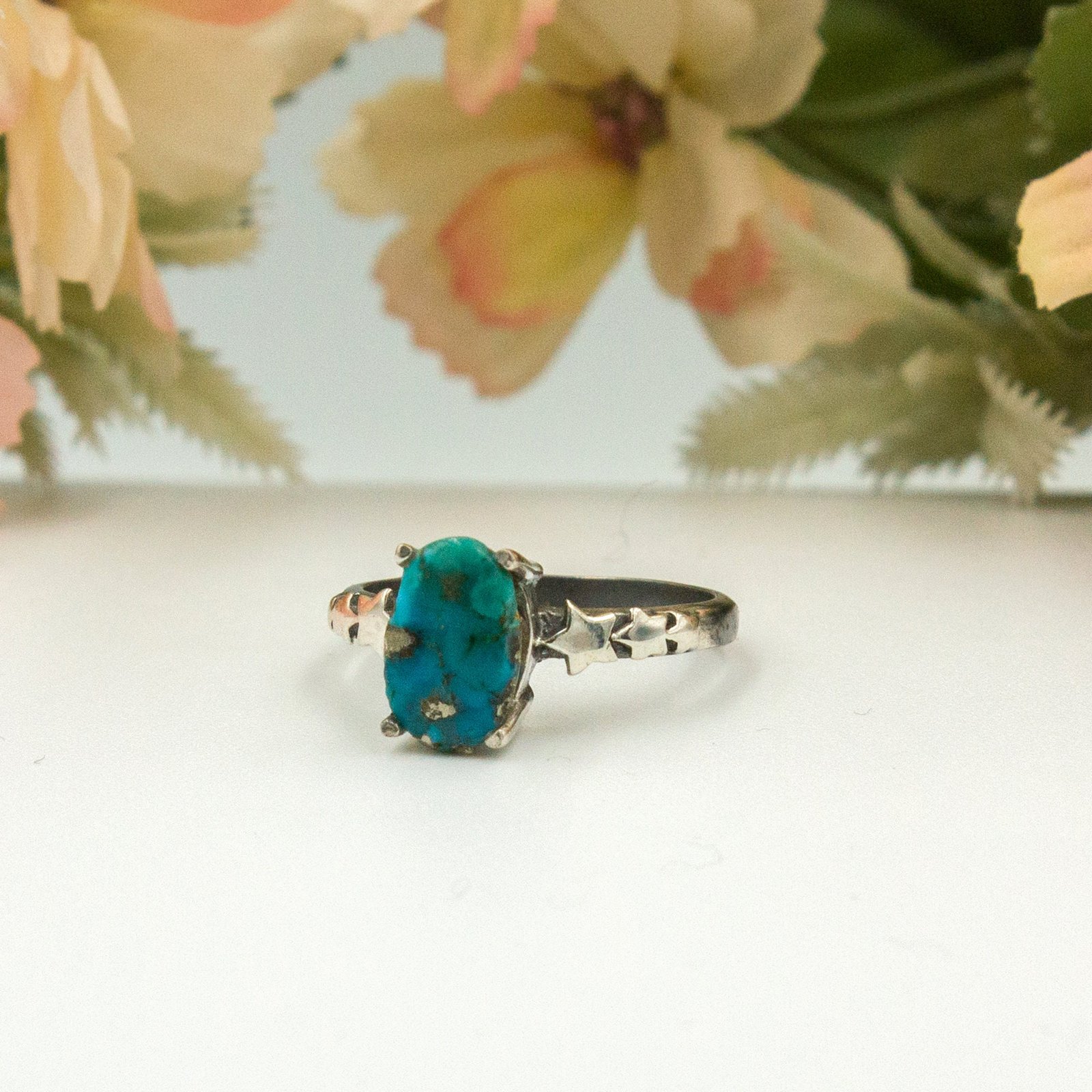 Natural Turquoise Star Pattern Solid Sterling Silver Ring 925