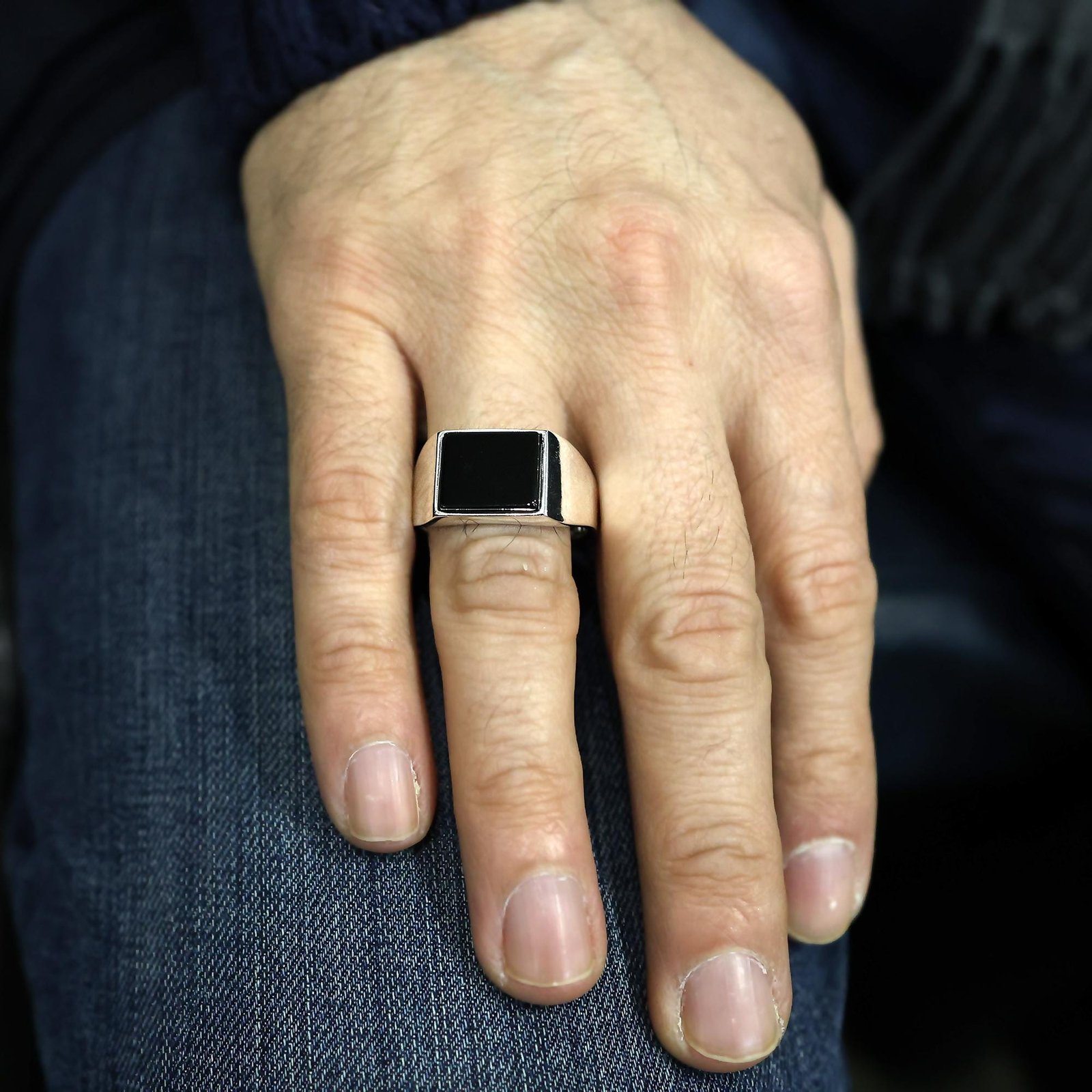 Modern Men’s Ring, Rectangle Onyx Signet Ring, Men’s Pinky Ring, Unique Men Ring, Onyx Jewelry Ring, Gemstone Ring, Gift for Him