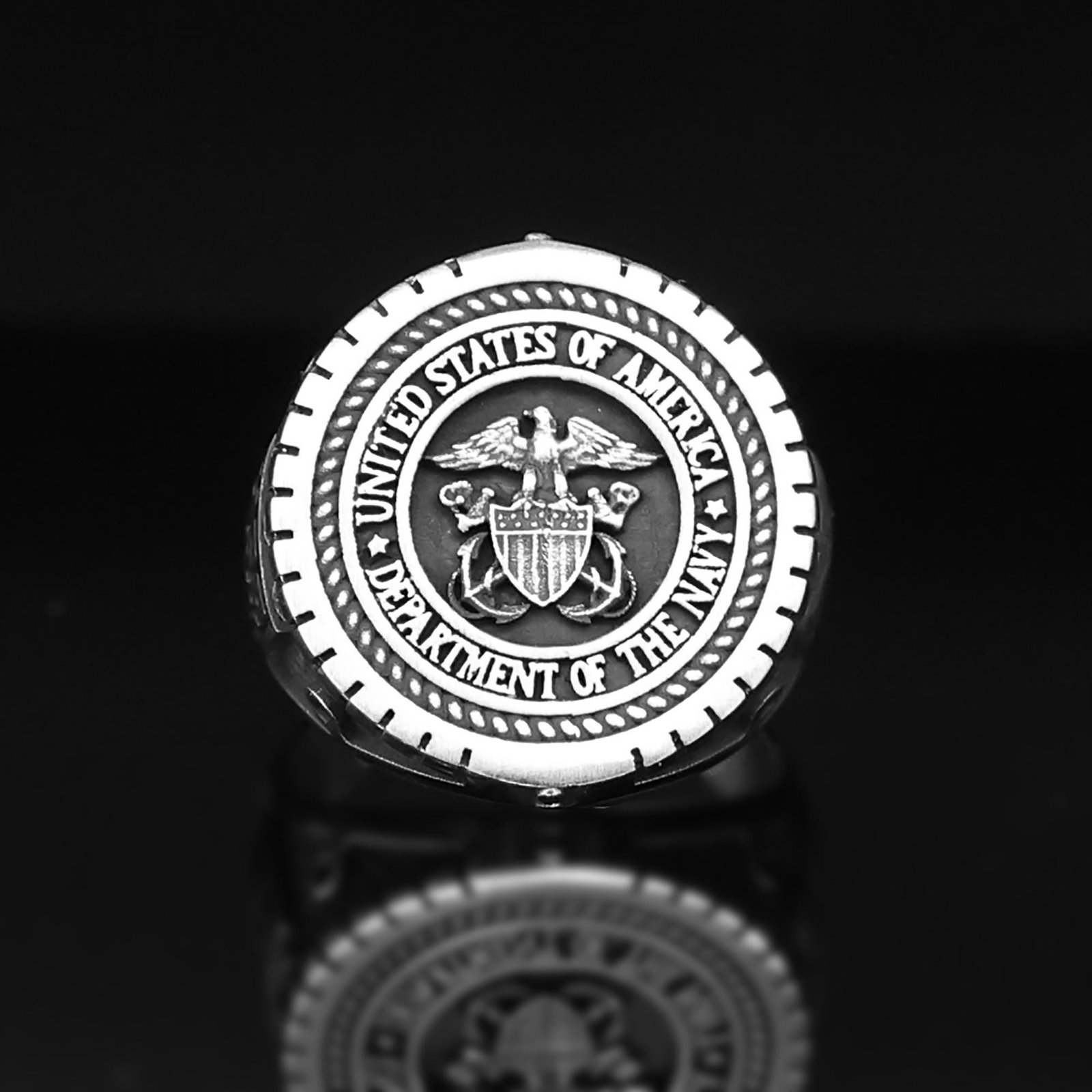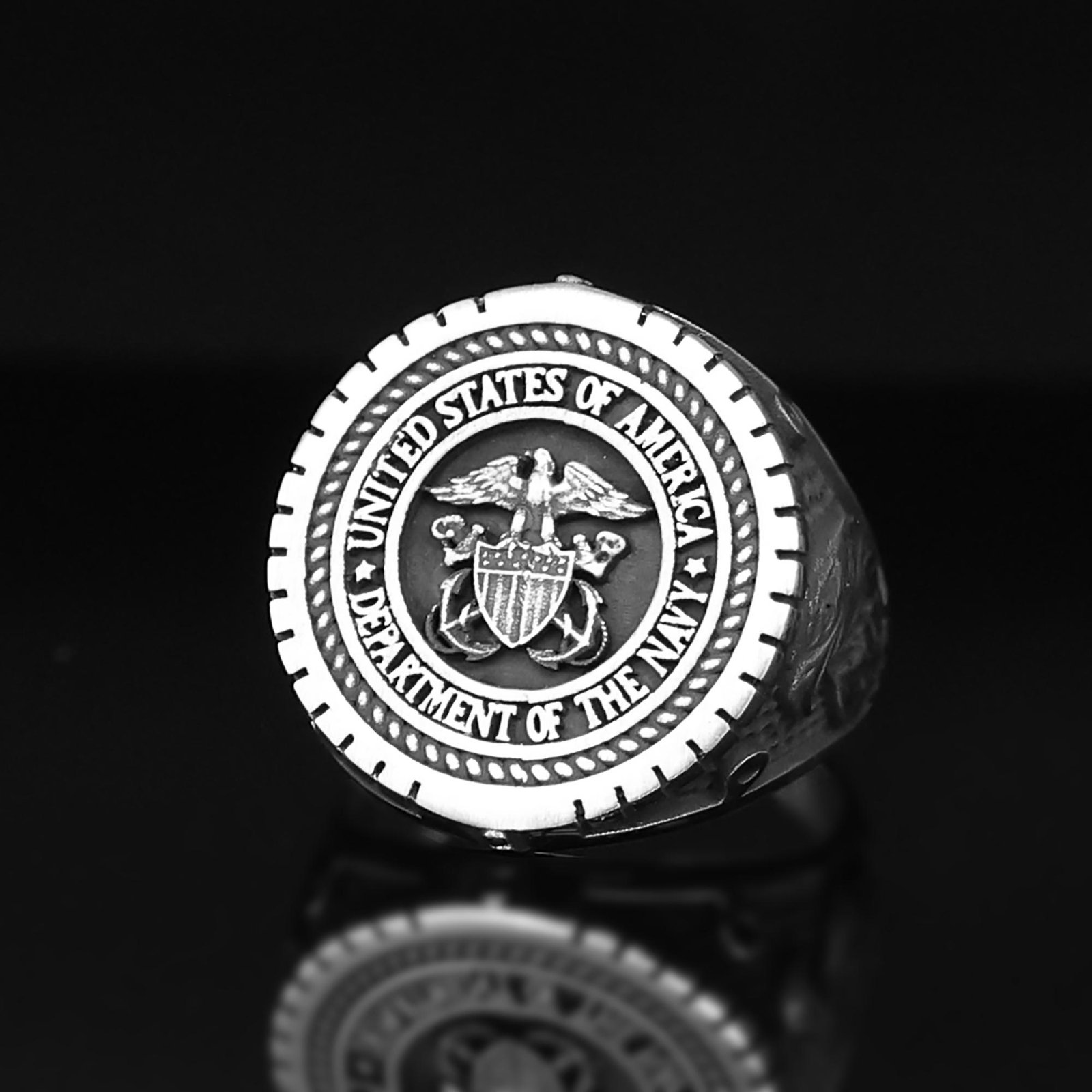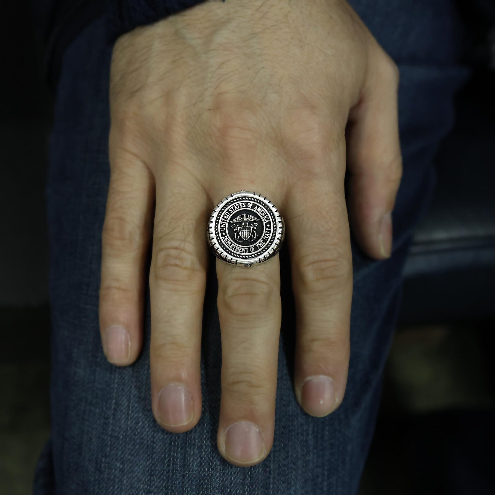 Solid 925K Sterling Silver, USA Department of the Navy Ring, USA Eagle & US Army Shield on the Side, Military Signet Ring, Gift for Him